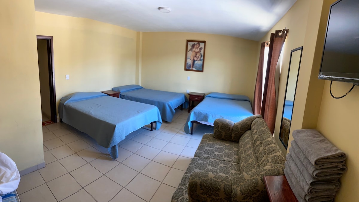 Estamos ubicados a 1/2 cuadra del pocito del primer milagro, a 2y 1/2 cuadras de catedral Basílica, a 2 cuadras del Centro comercial Argania, adicional tenemos Modernas instalaciones, todos los cuartos cuentan con wifi y smartv, así como Con colchones y almohadas memory foam para que tengas un sueño reparador y descanses como Te mereces