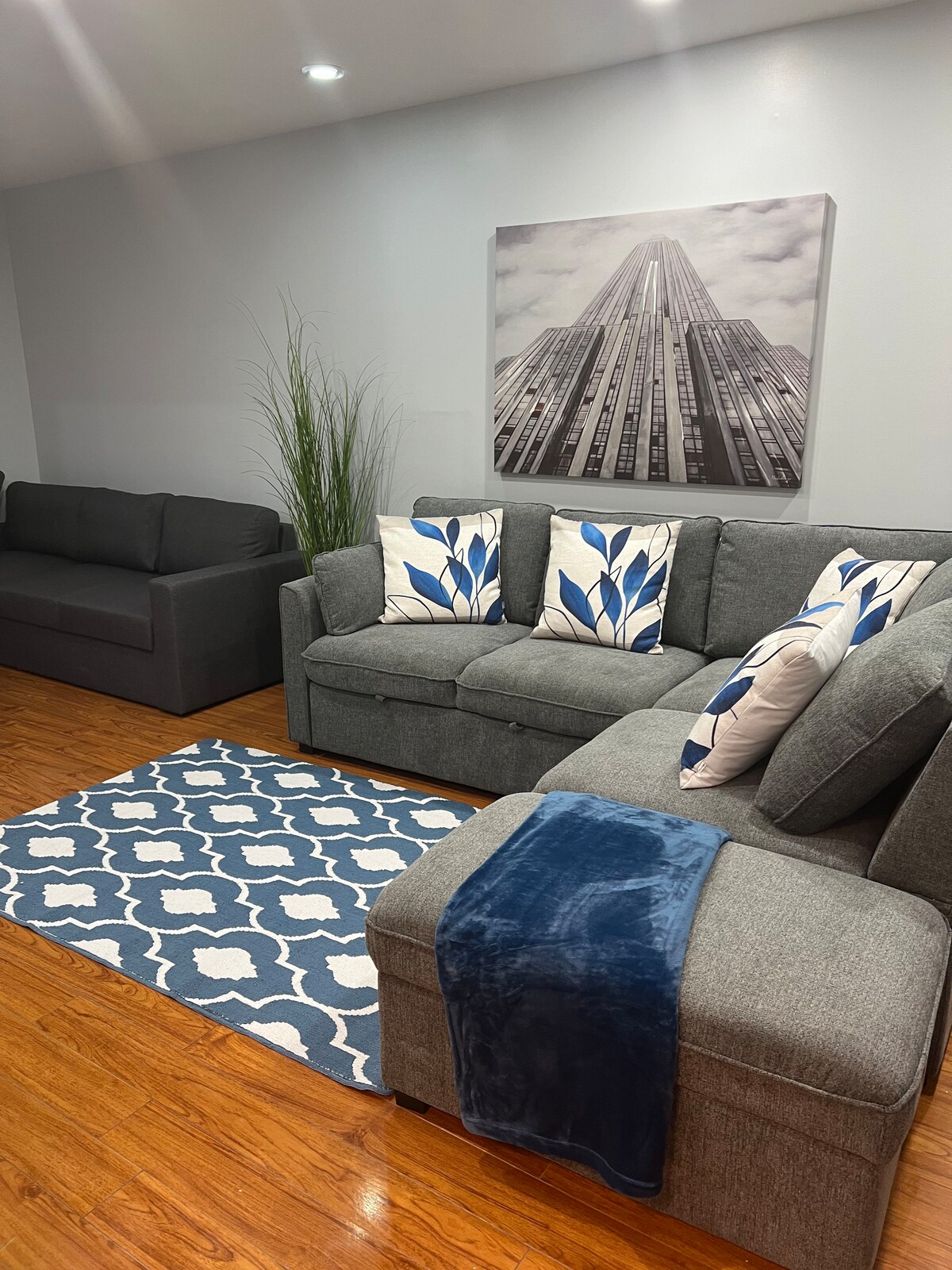 Enjoy a stylish and peaceful stay at this centrally located one-bedroom lower-level unit, perfect for both leisure and business travelers. With your private entrance, parking, and all the essentials, it’s your ideal home away from home. Features include a full kitchen, bathroom, internet, smart TV, one Queen and one sofa bed, and a functional workspace. Steps from FreshCo, Walmart, restaurants, and services. Minutes to Vaughan Mills, Canada’s Wonderland, Cortellucci Hospital and transit.