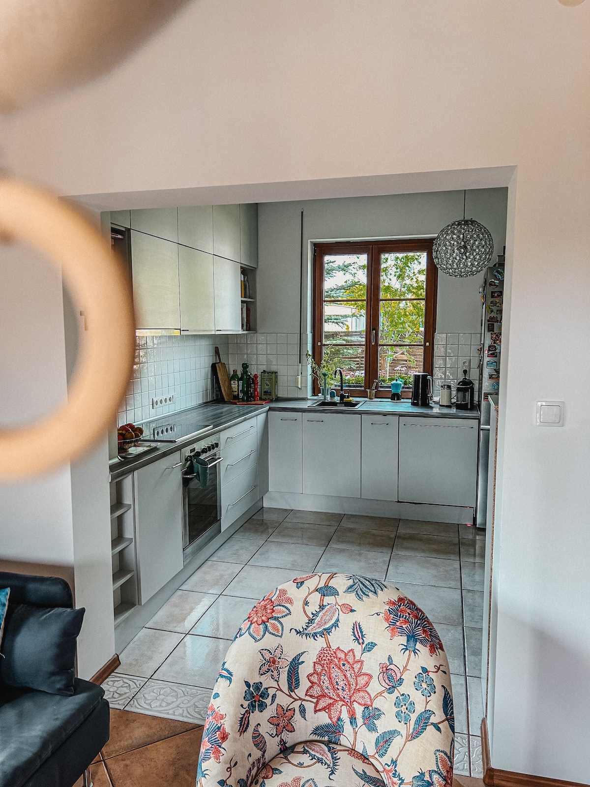 A two-story house with a terrace, garden, and stunning views of nature. 4 bedrooms, 3 bathrooms, 2 kitchens, and a spacious living room with a fireplace. All fresh and functionally furnished. The garden features a lawn, forest, a fireplace, a grill, loungers, hammocks, and a swing. The perfect place for a family or friends to escape the hustle and bustle of the city. No neighbors on the immediate border. Forests, lakes, bike trails, and kayaking trails are nearby. No large parties allowed.