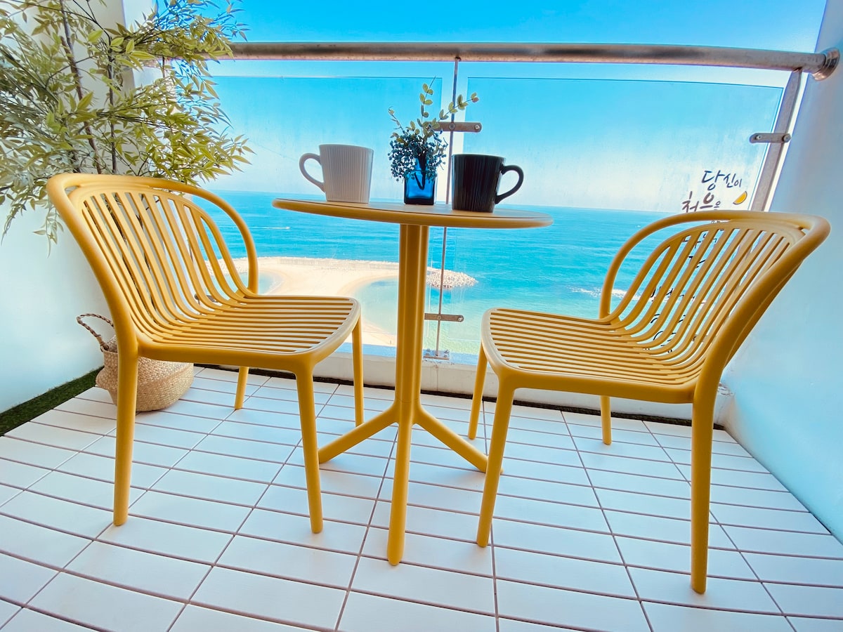 El espacio relajado☆ que solo 1.5 habitaciones pueden tener☆ Es un alojamiento espacioso adecuado para toda la familia. Un espacio deslumbrante donde el cielo claro de Sokcho y el mar azul del Mar del Este se encuentran. Durante el día, puedes disfrutar de tomar el sol con vista al mar del Este y al puerto de Dongmyeong. Se pueden ver el Yeonggeumjeong y el faro, y se puede ver el crucero atracado en el puerto de Dongmyeong. Por la noche, es un espacio más agradable con vistas al Pocha Street, la noche de la ciudad, incluido Dongmyeong Port, y la noria que brilla en el mar de Sokcho. En verano, puede salir a la playa justo enfrente y disfrutar del mar esmeralda. En la parte posterior se encuentra el lago Yeongrang, que es ideal para pasear. En primavera y otoño, puedes disfrutar del Seoraksan. Hay muchos restaurantes y cafeterías deliciosos y modernos cerca. En el primer piso hay una tienda de conveniencia abierta las 24 horas, lo que es muy conveniente. Espero que tengas un viaje agradable y feliz. ¡Gracias!