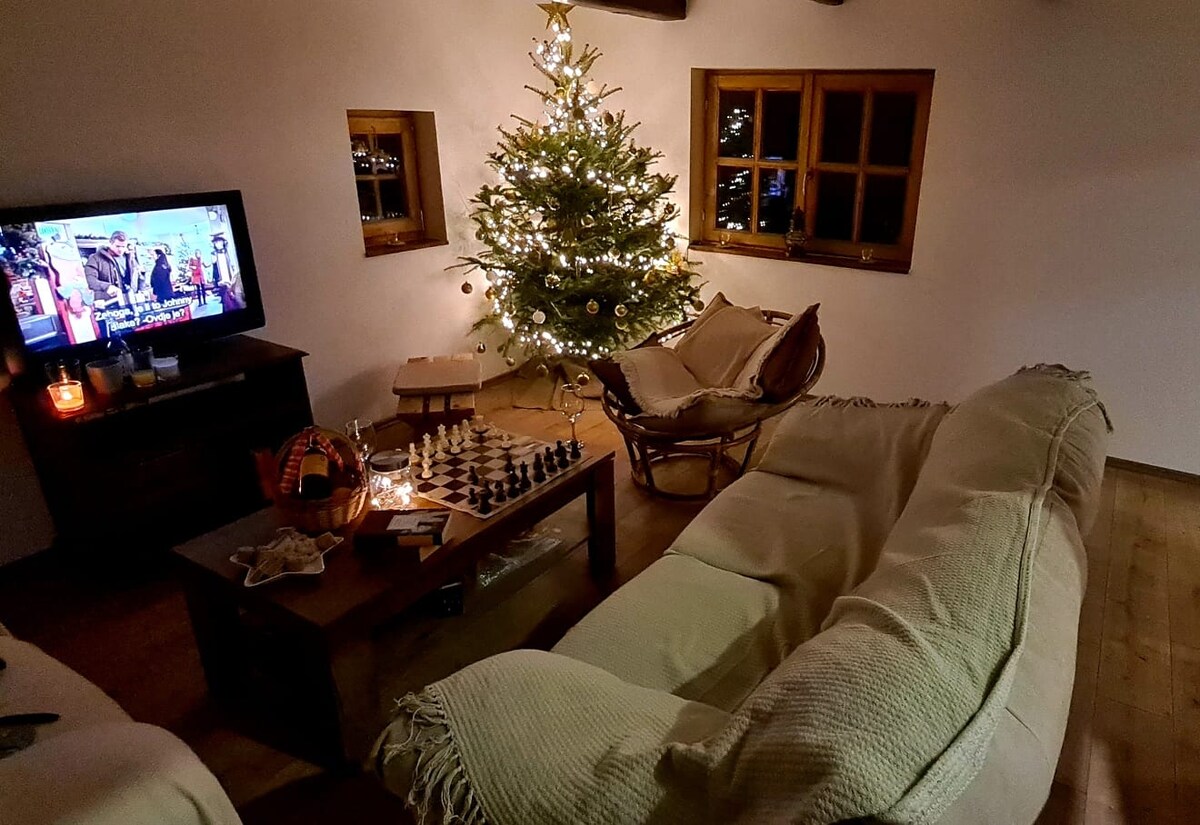 Ubicada en el corazón de la naturaleza virgen, "Aurora" ofrece paz y tranquilidad lejos del ruido de la ciudad. La vista panorámica de las colinas y los bosques proporciona una sensación de libertad. "Aurora" tiene capacidad para 4 personas (2+2 camas). Los huéspedes tienen a su disposición una sauna de infrarrojos y un jacuzzi. También hay una parrilla para barbacoa y una cabaña de jardín para socializar. La ubicación garantiza la privacidad y está cerca de todas las instalaciones necesarias. El río Kupa está a pocos kilómetros. ¡Reserve su estancia y disfrute de un ambiente relajante!