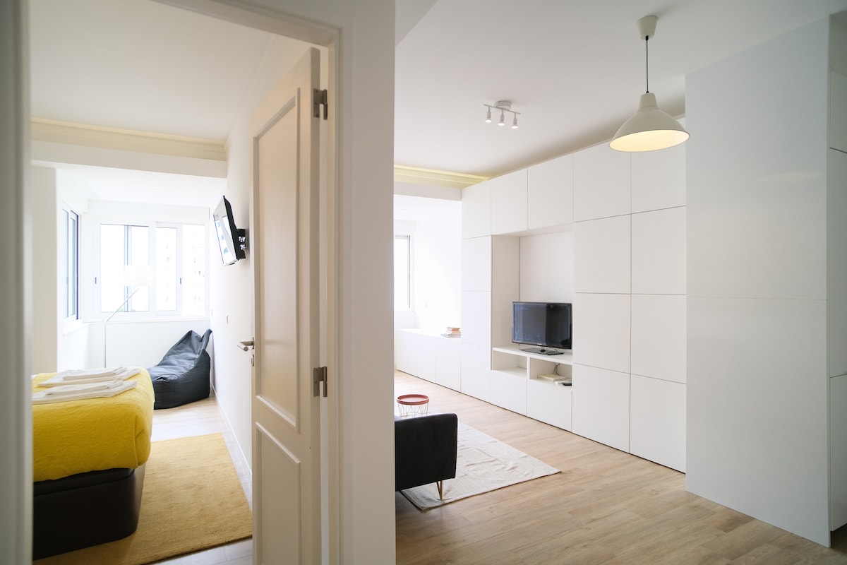 Stylish, spacious, and central studio apartment with: 🛌 Best sleep quality : comfortable king bed, luxury pillows and soft white linen 🚿 Very large marble bathroom with quality towels and free toiletries ❄️ A/C 👗 Washer & dryer 🛗 Elevator 👨🏻🍳 Kitchen 🍷 Vibrant area with many restaurants, shops and cafes 📍 Walking distance to Chiado, Bairro Alto & Cais do Sodré 🚋 Directly on Tram 28 📶 Wi-Fi 📺 Smart TV with 200+ HD Channels 🧼 Squeaky clean 🛒 Supermarket is 1 minute away