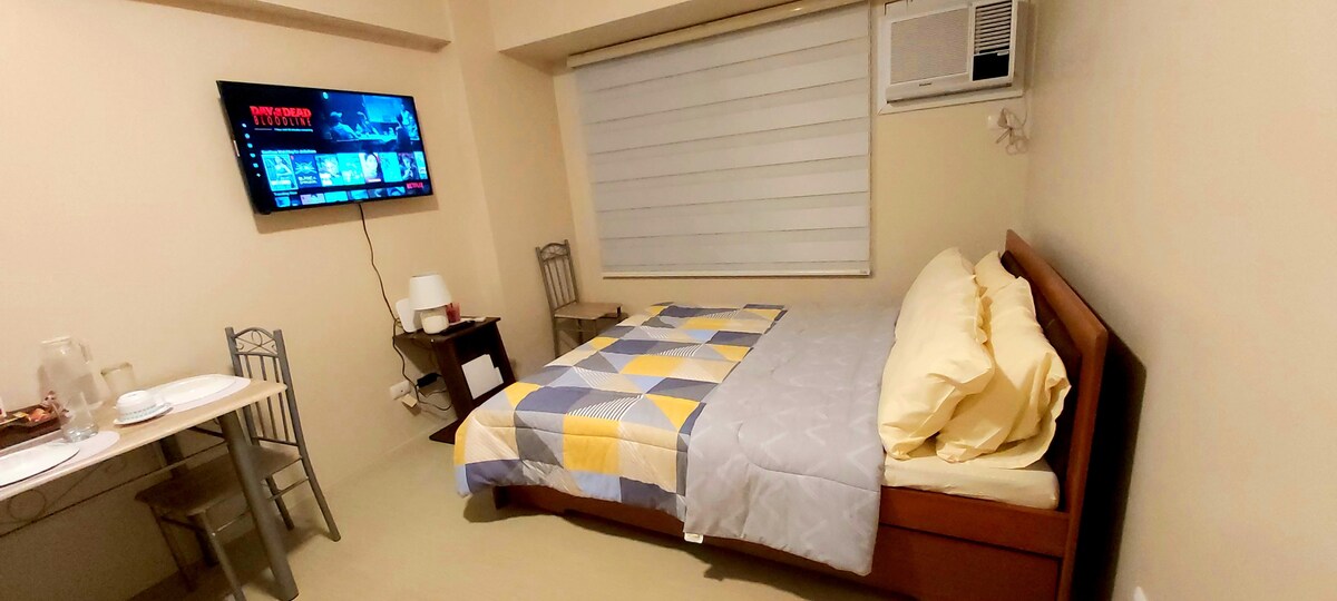 📢 PLEASE READ BEFORE BOOKING "Home Away from Home" – Studio Unit This cozy studio features 1 full/double size bed 🛏️, perfect for 2 people, plus an additional full/double size floor mattress (about 1 inch thick) 🛋️ that can comfortably accommodate 2 more guests. The extra mattress will only be set up if your party exceeds 2 guests. It’s your perfect urban sanctuary 🏙️, right in the heart of the vibrant Megaworld Complex! 🌟