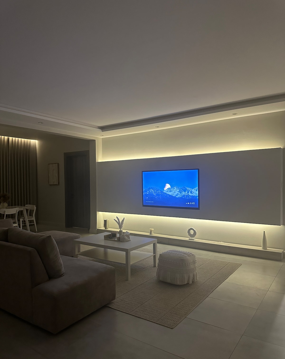 Dos dormitorios y un salón moderno con pantalla de 75 pulgadas
