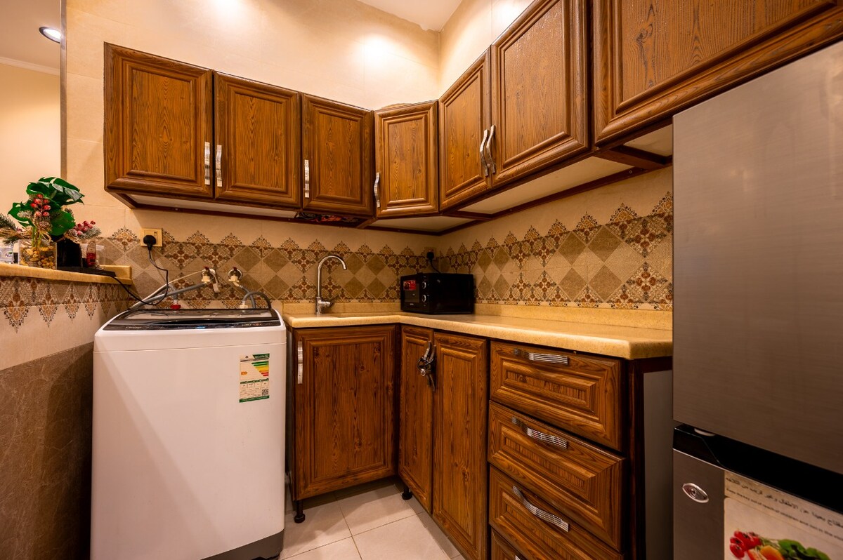 Disfrutarás de una experiencia de lujo en este céntrico alojamiento. Un modesto apartamento en el centro de la ciudad puede ser «el punto de partida perfecto para explorar la ciudad, especialmente diseñado para a quienes les gustan los estilos modernos y cálidos». El aeropuerto está a 10 minutos. Corniche a 23 minutos. Pista de Fórmula 1 a 19 minutos. Centro comercial Red Sea Mall a 16 minutos. Centro comercial de Arabia a 8 minutos. A pie Lavanderías a 5 minutos. Supermercado a 5 minutos.