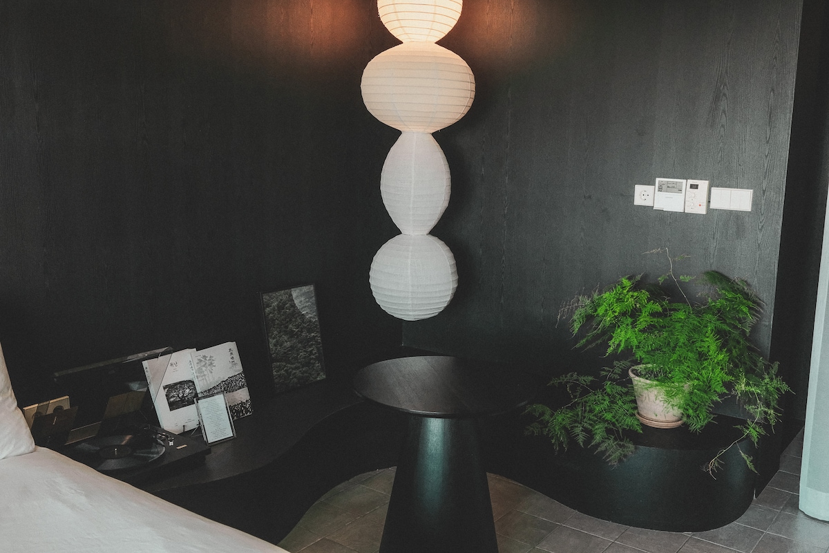 Una habitación para alojarse profundamente esta habitación es un espacio donde la sombra te saluda antes de la luz. Las paredes de madera negra envuelven suavemente la habitación, y las linternas de papel blanco flotan tranquilamente sobre ellas. Dentro de este contraste, una tensión tranquila mantiene el espacio unido. Esta habitación estaba pensada para guardar silencio. Incluso sin practicar la meditación, Esperaba que te sintieras ralentizando solo por estar aquí. Una habitación donde no está bien hacer nada. Donde los pensamientos pueden deambular y luego alejarse. Tranquilo, profundamente...