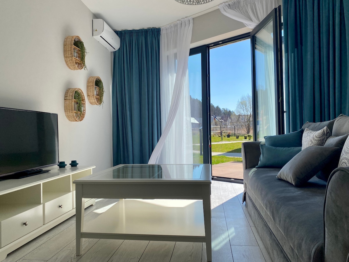 Cottage on the Trail en Karpacz es un apartamento de un nivel con una terraza diseñada para 6 personas. El área de unos 52 m2 consta de una sala de estar con cocina americana y una salida a la terraza, dos dormitorios con cerradura con camas dobles y un baño con ducha. La tranquilidad y la proximidad a las zonas verdes es un paraíso para los amantes del baño forestal. También contamos con un espacio de estacionamiento gratuito al aire libre debajo de la propiedad para ti. Permitimos un perro por una tarifa adicional.