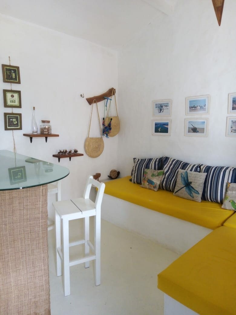 Casa estilo Bungalow Frente Mar! Vista privilegiada para a Beira Mar da Barrinha. Comporta 4 pessoas confortavelmente. Sala com mesa de Jantar e Sofá para home office, Ótimo Wi-fi disponível. Cozinha equipada com Fogão, Forno, Geladeira e utensílios. Suíte espaçosa com Ar Condicionado, armários, cofre, 1 cama Queen e 2 camas de Solteiros, Bancada do banheiro ampla. Água quente no banho e privacidade. Varanda Coberta com Rede para descanso e móveis externos para um Bom Café/Almoço Vista Mar.