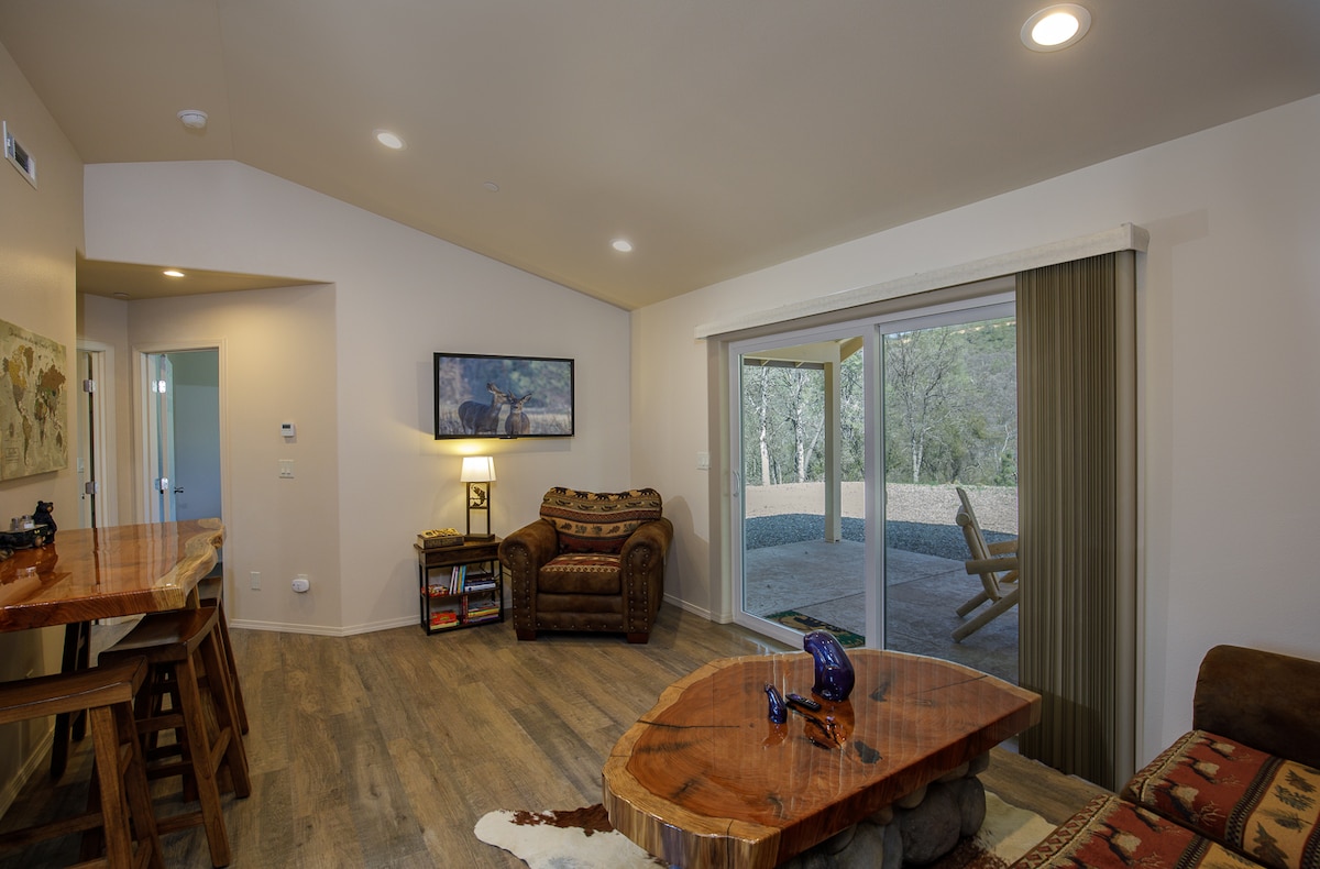 Welcome to The Den Above, our secluded modern getaway nestled alongside a gently flowing creek in the serene Sierra National Forest. This newly remodeled retreat offers a perfect hideaway for those seeking tranquility and a connection to nature. Just an short hour's scenic drive from Yosemite. Dog-friendly: $50 pet fee, please add your pup as a guest when you make the reservation.