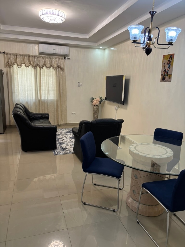 🏠 Cozy 2-bedroom first-floor apartment located in Fajara F Section! 🏖️ Enjoy easy access to amenities, pristine surroundings, and a serene environment. 🚗 Convenient parking space available. Stay cool with air conditioning in every room, including the living room. Plus, enjoy 24-hour Wi-Fi connectivity for uninterrupted browsing. Book your dream stay now! 🌟 Please note: Guests are responsible to top up the electricity.