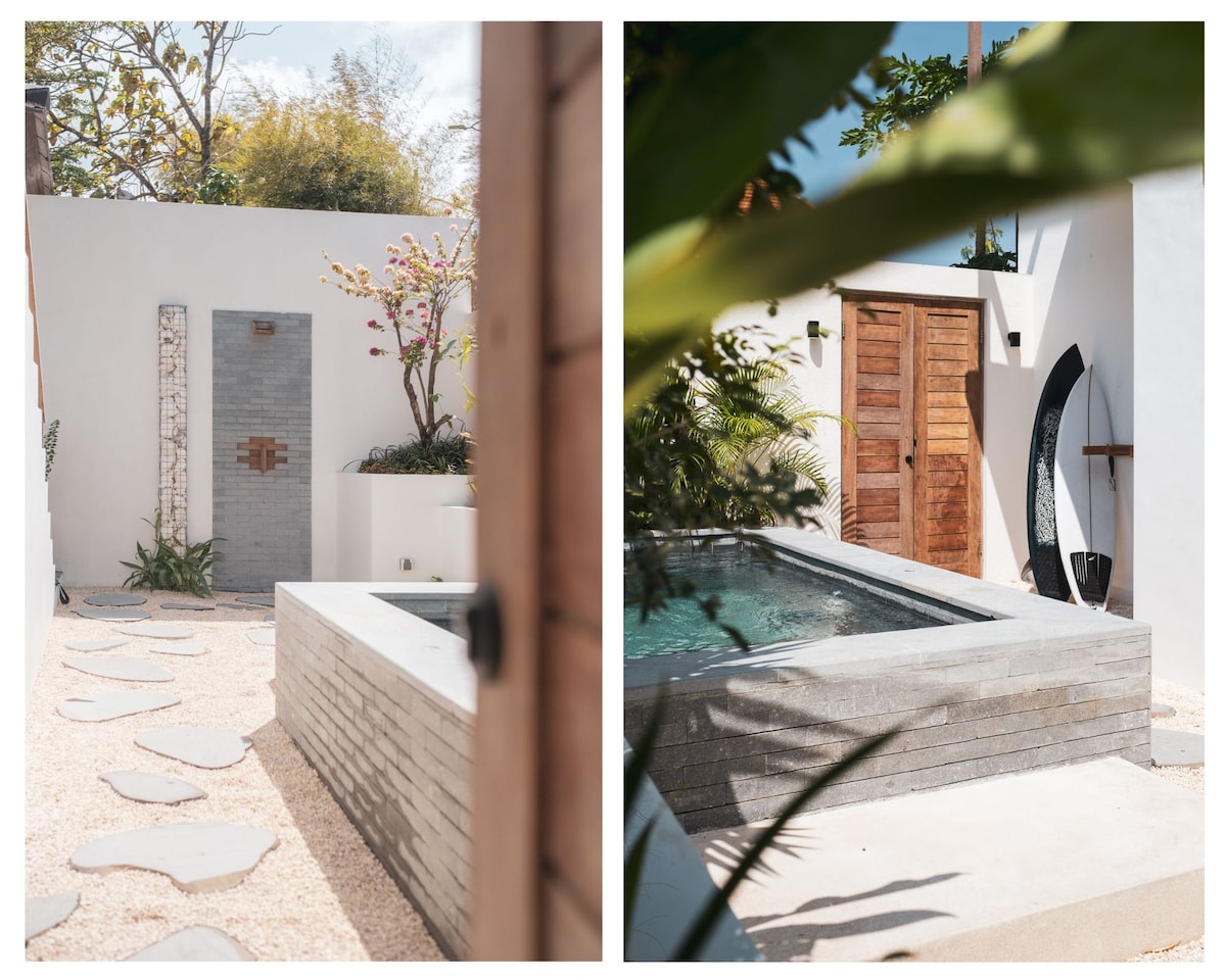 Entra en una villa de diseño en Bingin donde cada detalle invita a sentirse como en casa. Un espacio que combina confort y diseño para una estancia cálida y única. Diseñada con mimo, cada rincón invita a disfrutar. Perfecta para parejas que buscan una experiencia especial en Bali. Ideal para relajarse y disfrutar la isla a tu ritmo ✔ Dormitorio confortable ✔ Salón abierto ✔ Cocina equipada ✔ Jardín (piscina, tumbonas y ducha) ✔ Wi-Fi de alta velocidad ✔ Espacio de trabajo ✔ Smart TV ✔ Parking