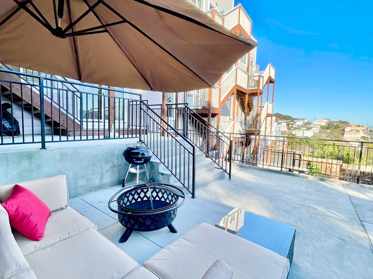 Disfruta de San Francisco en esta impresionante casa de nueva construcción. Disfruta de impresionantes vistas a la bahía, con techos altos con electrodomésticos nuevos. El dormitorio tamaño king cuenta con baño privado con bañera. Ambas suites tienen espuma viscoelástica. Relájate frente al Smart TV con Netflix, Disney+, ESPN y Hulu. Disfruta de muchos juegos de mesa incluidos. Cocina a tu gusto en la cocina totalmente equipada, con tazas de café Starbucks y una variedad de opciones de té. ¡Haz que tu próximo viaje a San Francisco sea inolvidable!