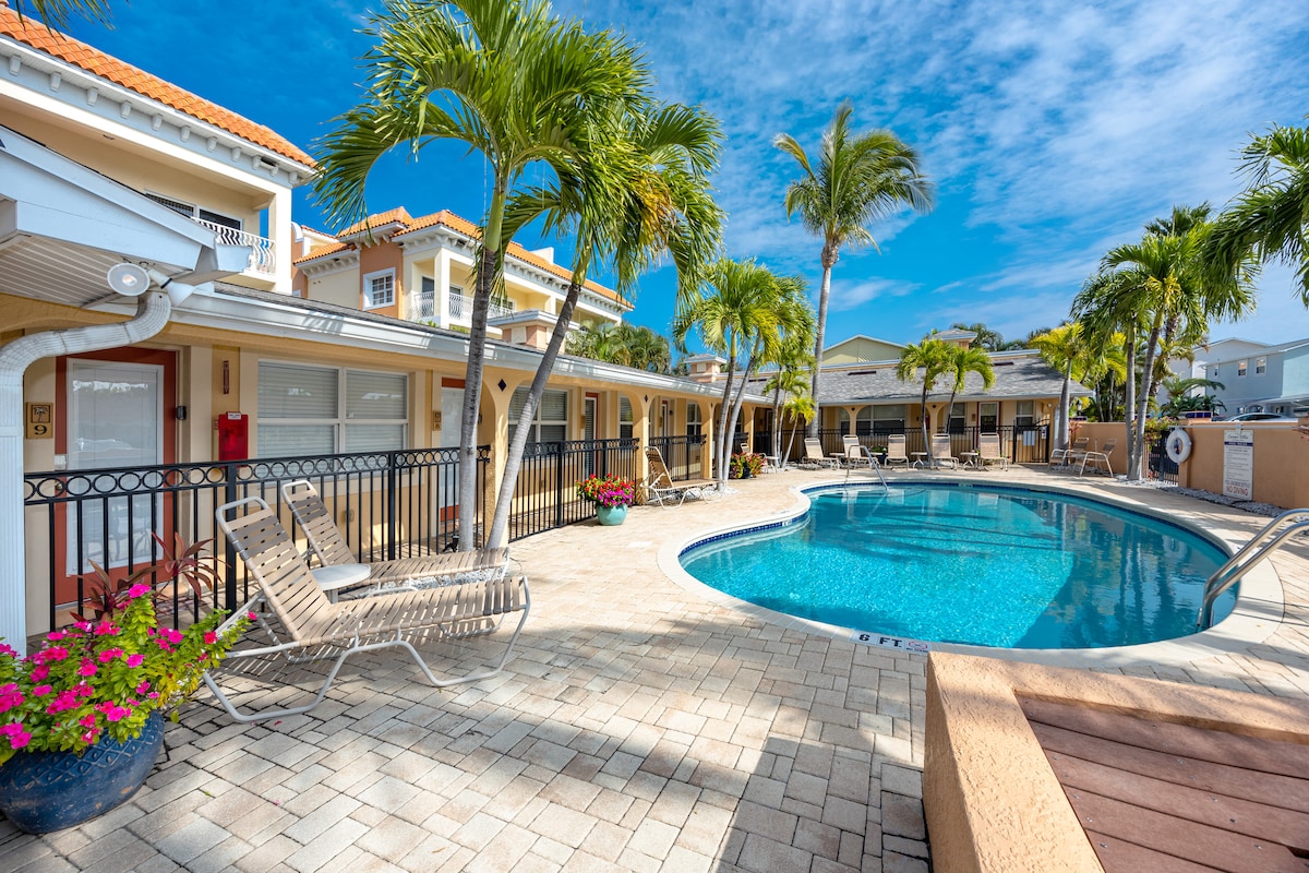 ¡El verdadero tesoro de Treasure Island! Ubicado justo al lado de Gulf Blvd, en una playa aislada, este cómodo estudio privado recientemente remodelado está ubicado en una propiedad residencial frente a la playa con exuberantes jardines y con inquilinos en el lugar. Este acogedor lugar es todo un lujo para los pies descalzos: estás a solo unos pasos de la playa y a poca distancia en bicicleta o a pie de bares de playa, música en vivo y restaurantes. Nota: No hay aparcamiento disponible para los huéspedes, pero hay un aparcamiento de pago cerca, así como un tranvía público frecuente.
