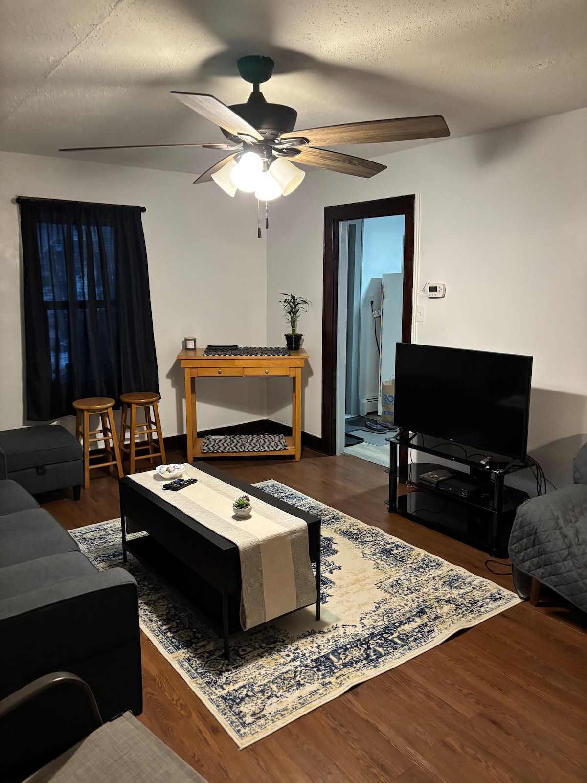 Un encantador departamento en el primer piso perfecto para un viajero solo o una pareja. Cocina totalmente equipada, sala de estar con televisor inteligente y baño completo con lavamanos doble. El dormitorio cuenta con un colchón de tamaño completo para una noche de sueño reparador. Hay estacionamiento disponible en la parte trasera o en la calle, además de Wi-Fi gratuito y lavadora/secadora en el lugar para su comodidad. Ubicado en el centro, cerca de las rutas principales: 17 (este/oeste), 81 (norte/sur) y 88 (este). Cerca de Endwell, Johnson City, Vestal y Binghamton.