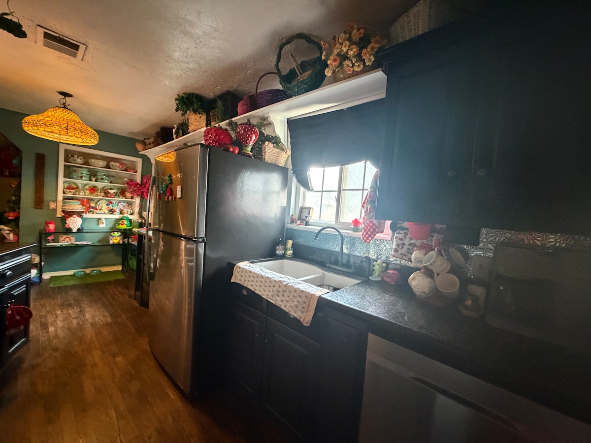 ¡La Casa Feliz no es solo un lugar para dormir, es una experiencia colorida, mágica, whismical y feliz! Decoración feliz, arte, flores, setas y criaturas míticas iluminan cada sonrisa. Disfruta del aire libre con el patio trasero XL vallado de privacidad, cama elástica, columpio, parrilla y mesa de patio o disfruta de los refrigerios, bebidas, juguetes, juegos de mesa y sala de televisión en el interior. Trae a tus mascotas grandes o pequeñas, ¡estaremos encantados de darles la bienvenida a todas! A solo 5 minutos de Tinker AFB, a 15 minutos de Paycom, Bricktown, del zoológico de OKC.