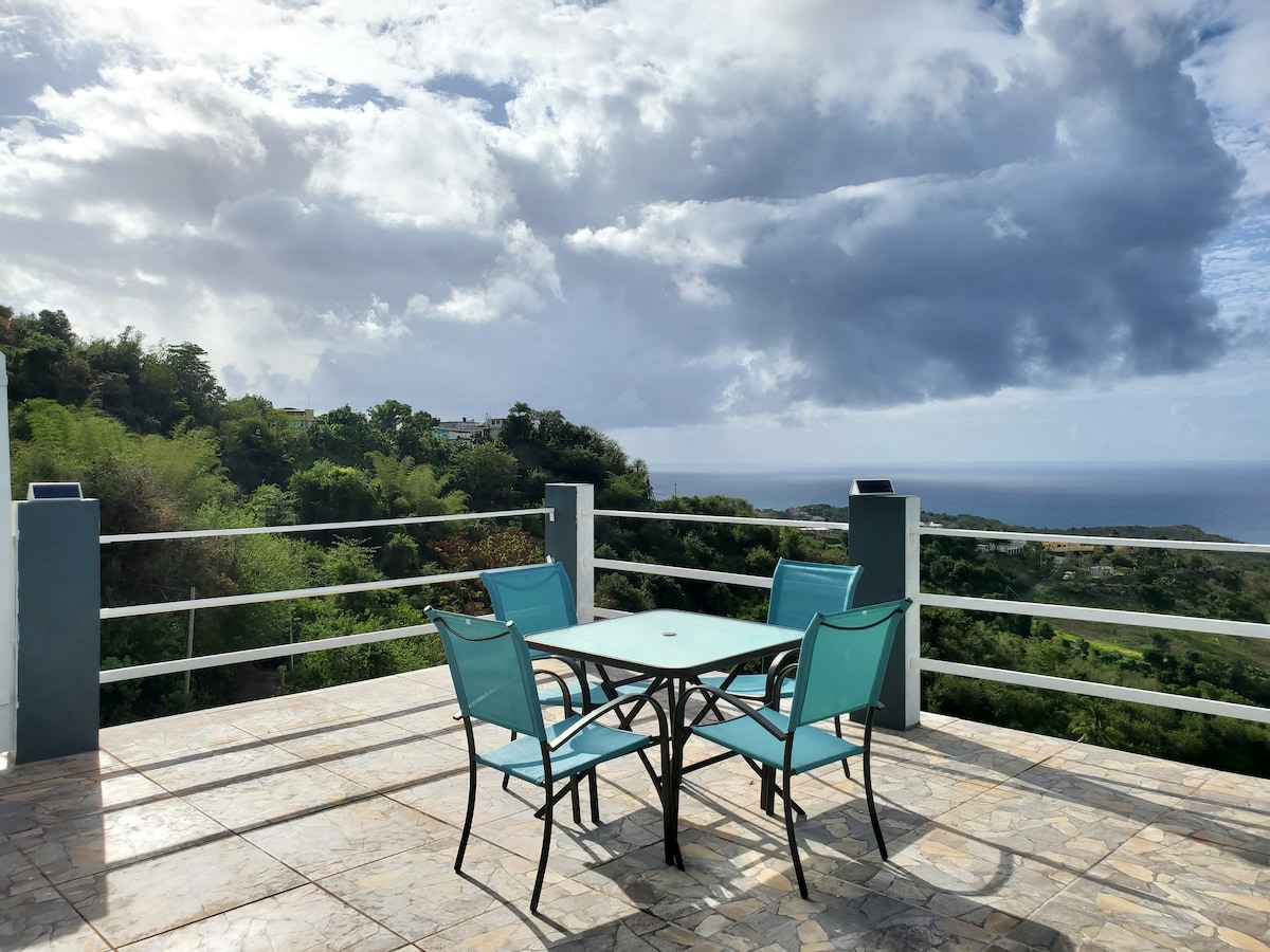 Disfruta de la relajación en este distintivo refugio en la cima de una colina que ofrece impresionantes vistas panorámicas de la costa con un atisbo de Vieques en el horizonte. Nuestro Airbnb ofrece impresionantes vistas tanto de la costa como de las montañas, a poca distancia de Humacao. Sumérgete en un ambiente relajado y de exploración sin fin, descubriendo el encanto de playas vírgenes y joyas ocultas a lo largo de la encantadora costa sureste de Puerto Rico.