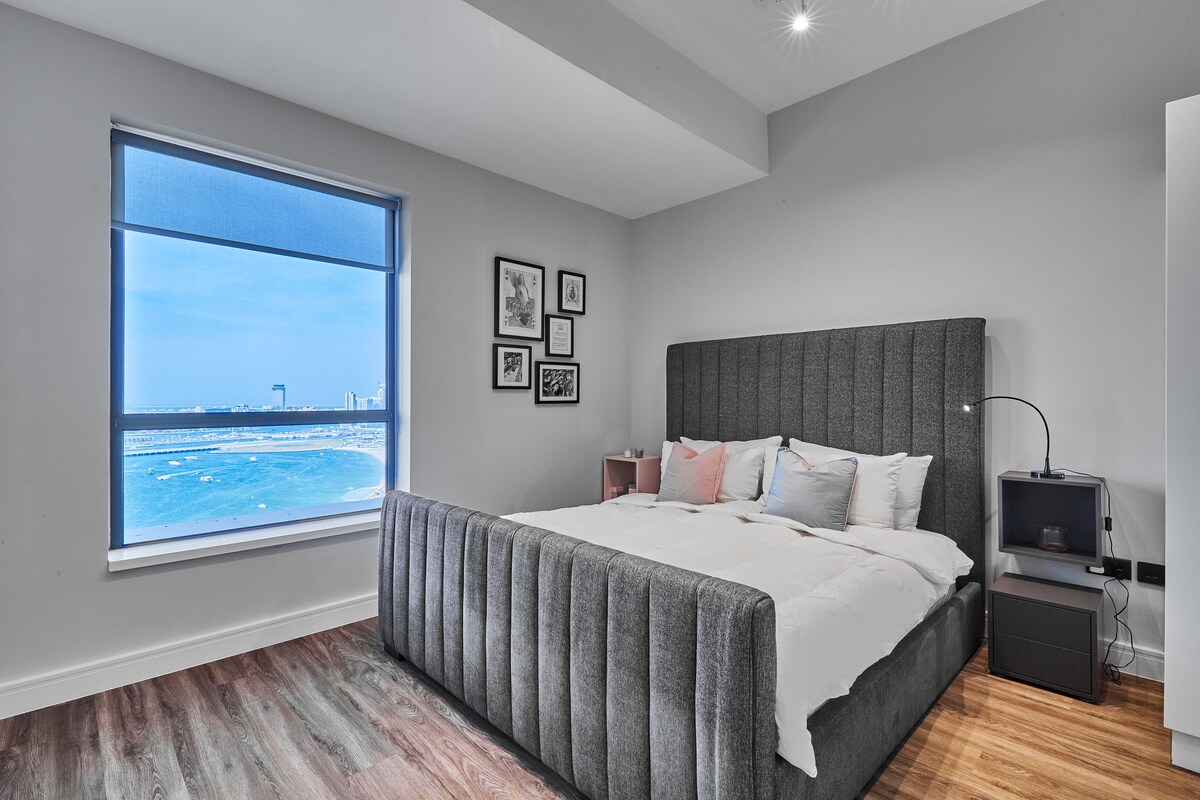 Disfruta de la máxima comodidad en nuestro elegante apartamento de 1 dormitorio con impresionantes luces de la ciudad y vistas al puerto deportivo desde el balcón. Perfectamente ubicado cerca de JBR Beach y Marina Mall, está a 10 minutos a pie de la estación de metro, lo que hace que la exploración sea fácil. Disfruta de servicios de primera calidad, wifi de alta velocidad, cocina totalmente equipada y una acogedora sala de estar con sofá cama. Relájate en el balcón con impresionantes vistas. ¡Reserva tu estancia ahora para disfrutar de una experiencia inolvidable en Dubái!