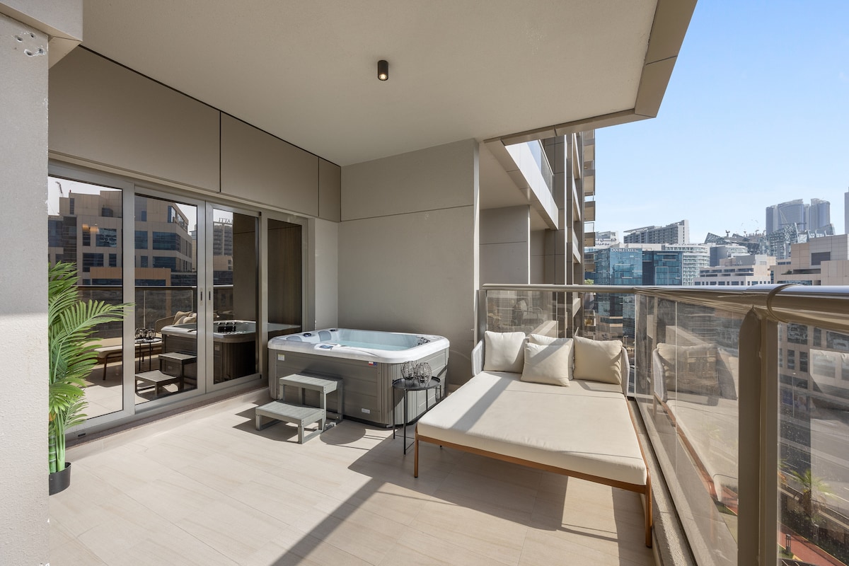 Departamento de lujo de un dormitorio con jacuzzi y balcón