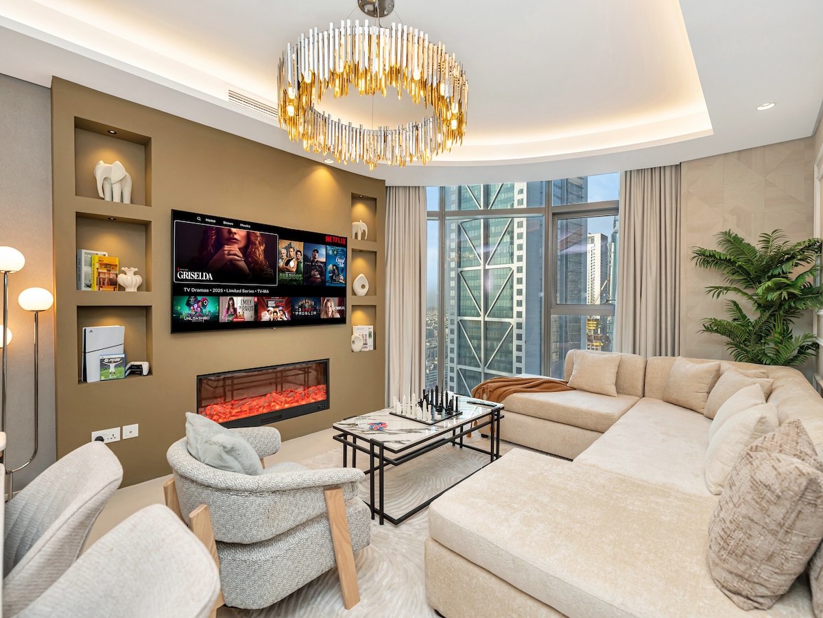 Trofeo|Burj View con chimenea y ambiente de cine en el hogar