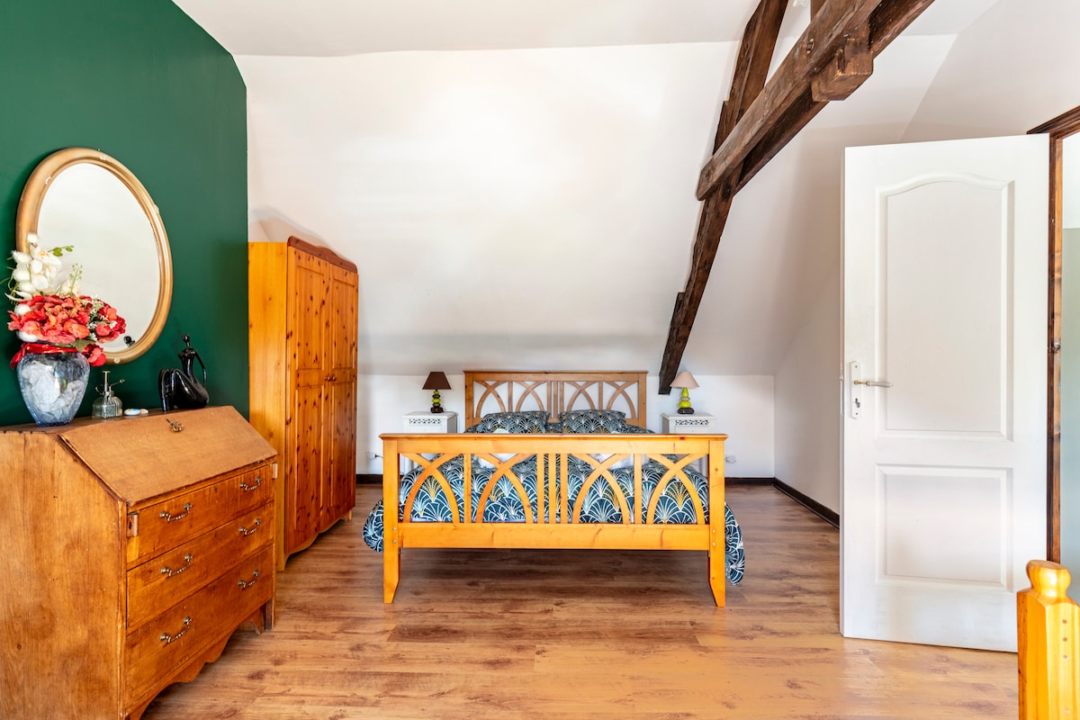Notre ancien fournil est une partie de notre corps de ferme. Au rez - de - chaussée, il est pourvu d'une cuisine équipée et d'une salle de douche avec toilettes. A l'étage, une chambre mansardée dispose de 3 lits indépendants. A l'extérieur, nos hôtes ont accès à une terrasse privée avec du mobilier de jardin. La wifi est gratuite. Un petit déjeuner (pain paysan, confiture) est proposé sur demande pour 5 euros par personne. Proche de la voie verte, les promeneurs apprécieront cette halte.