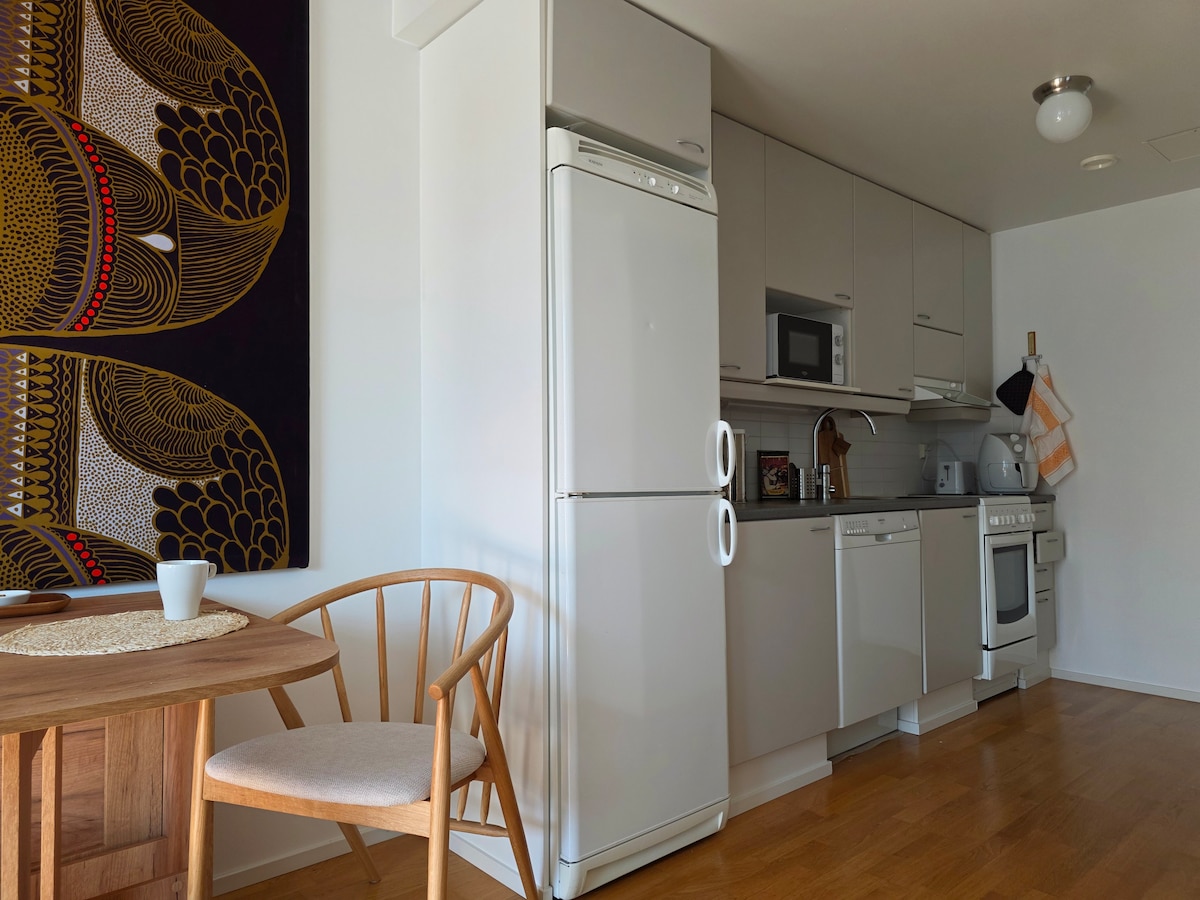 ¡Este espacioso apartamento de un dormitorio (51,5 m2) es ideal tanto para personas que viajan solas como para grupos más grandes! El apartamento está a poca distancia del Centro de Viajes (450 m), de los servicios del centro (450 m) y del centro de exposiciones (Pabellón, 800 m). También puede disfrutar de la proximidad a la naturaleza en la orilla del río Tourujoki, que está a solo 150 m. El centro comercial Sepän también está a solo 7 minutos en coche. El apartamento incluye una plaza de aparcamiento privada con toma de corriente para el coche. Además, se puede aparcar en la calle los días laborables con un disco de aparcamiento de 2 horas de 8:00 a 18:00 y el resto del tiempo de forma gratuita.