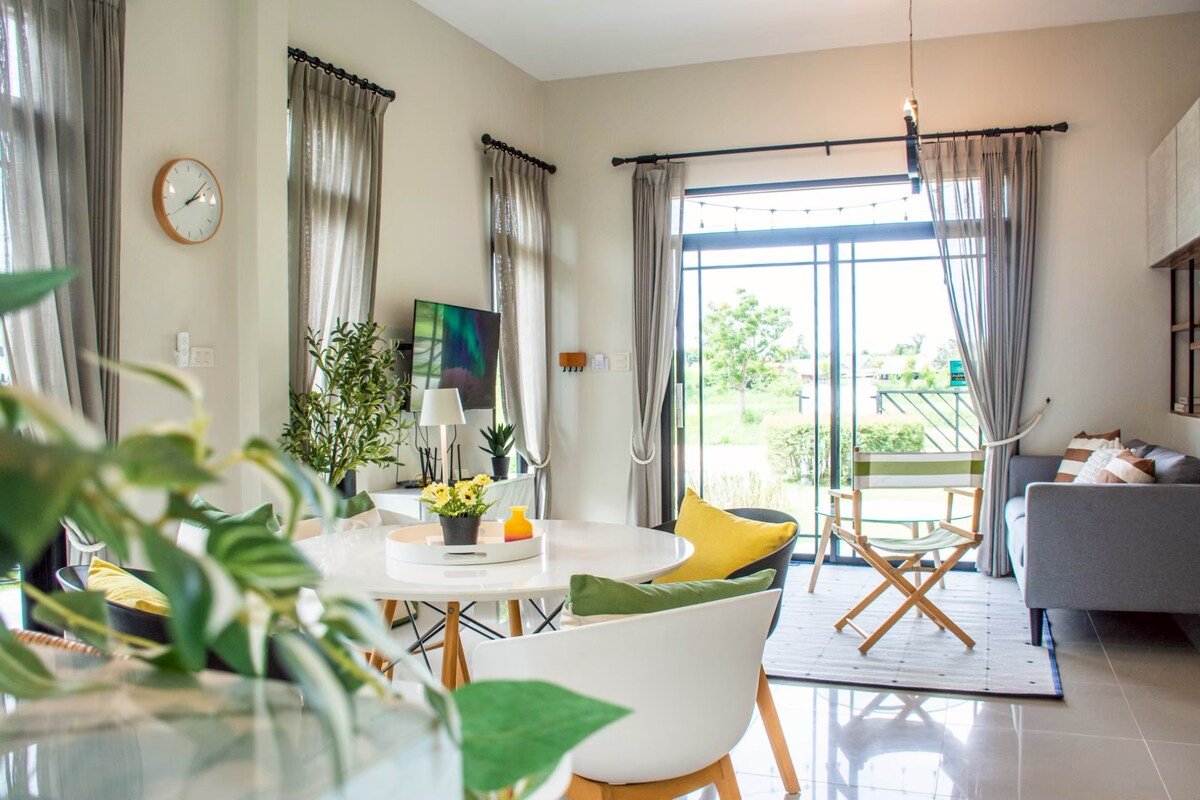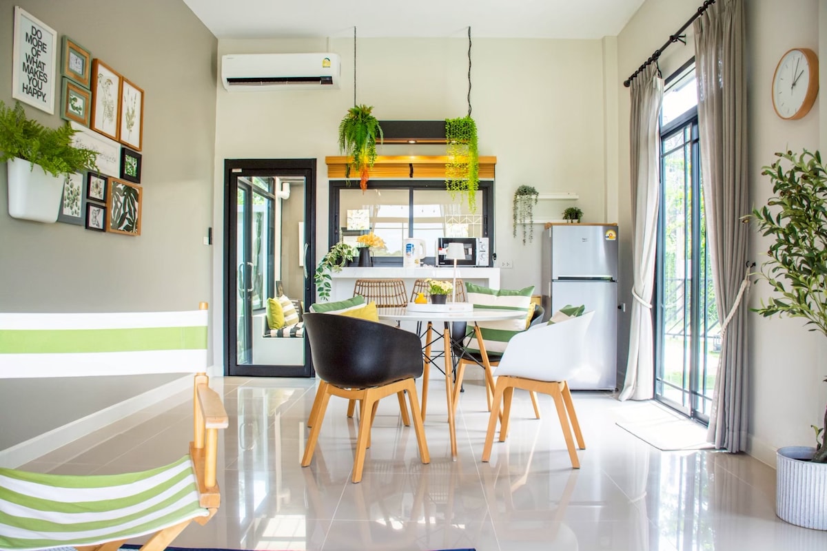 Relax with the whole family at this peaceful place to stay. 2 bedroom 2.5 bathroom Big kitchen with fridge 1.5 hours drive from Bangkok spacious space with garden surrounding. Safe for PM 2.5 Good for heath rehap and meditation