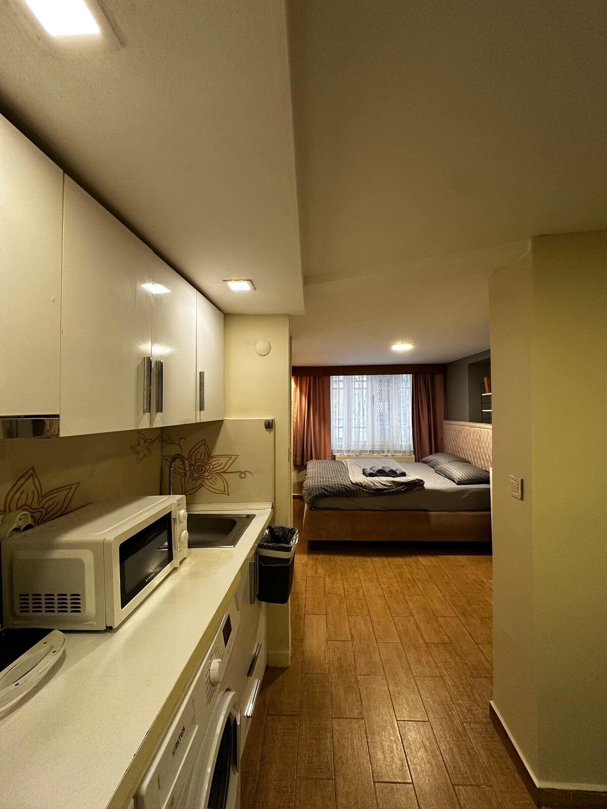 Apartamento estudio privado, baño privado y entrada privada en el corazón de la ciudad vieja de Sultanahmet, a solo un minuto a pie de los principales lugares de interés histórico: la mezquita Azul de Sultanahmet, Santa Sofía, el palacio de Topkapı, la cisterna subterránea y el centro de Sultanahmet. El apartamento está equipado con: *aire acondicionado *wifi gratuito *TV de pantalla plana con canales vía satélite *colchones ortopédicos *minicocina *mesa de comedor/sillas *plancha y tabla de planchar *secador de pelo *toallas, sábanas y mantas, limpieza gratuita.