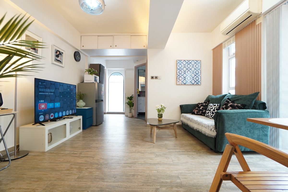 Bienvenido a mi apartamento de 2 dormitorios recientemente renovado en las inmediaciones de la estación de metro de North Point (a 5-10 minutos a pie). Se encuentra en un piso alto con vista parcial al puerto Victoria. Cuenta con un televisor de 55 pulgadas equipado con Google Chromecast, Roku (con NETFLIX), wifi de alta velocidad, sofá de 4 plazas, 3 unidades de aire acondicionado montadas en la pared, ducha a ras de suelo, dos colchones dobles, un ventilador de techo, un detector de humo, cocina de inducción, lavadora y microondas.