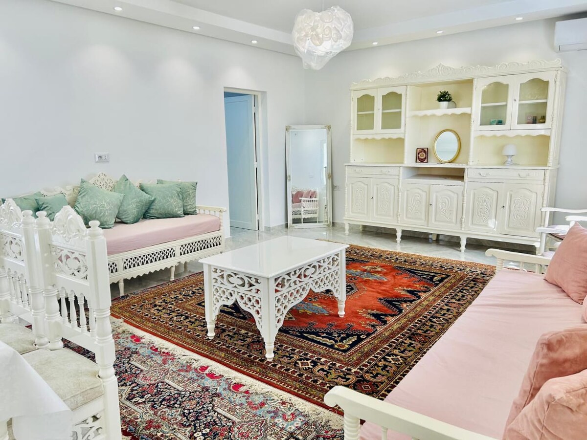Departamento luminoso a unos pasos de la medina de Kairouan. Perfecto para familias o grupos: 3 camas queen, 1 colchón inflable, una cama de bebé, cocina completa, amplio salón, aire acondicionado, Wi-Fi, lavadora. Recientemente renovado y cerca de zocos, cafés y lugares históricos.