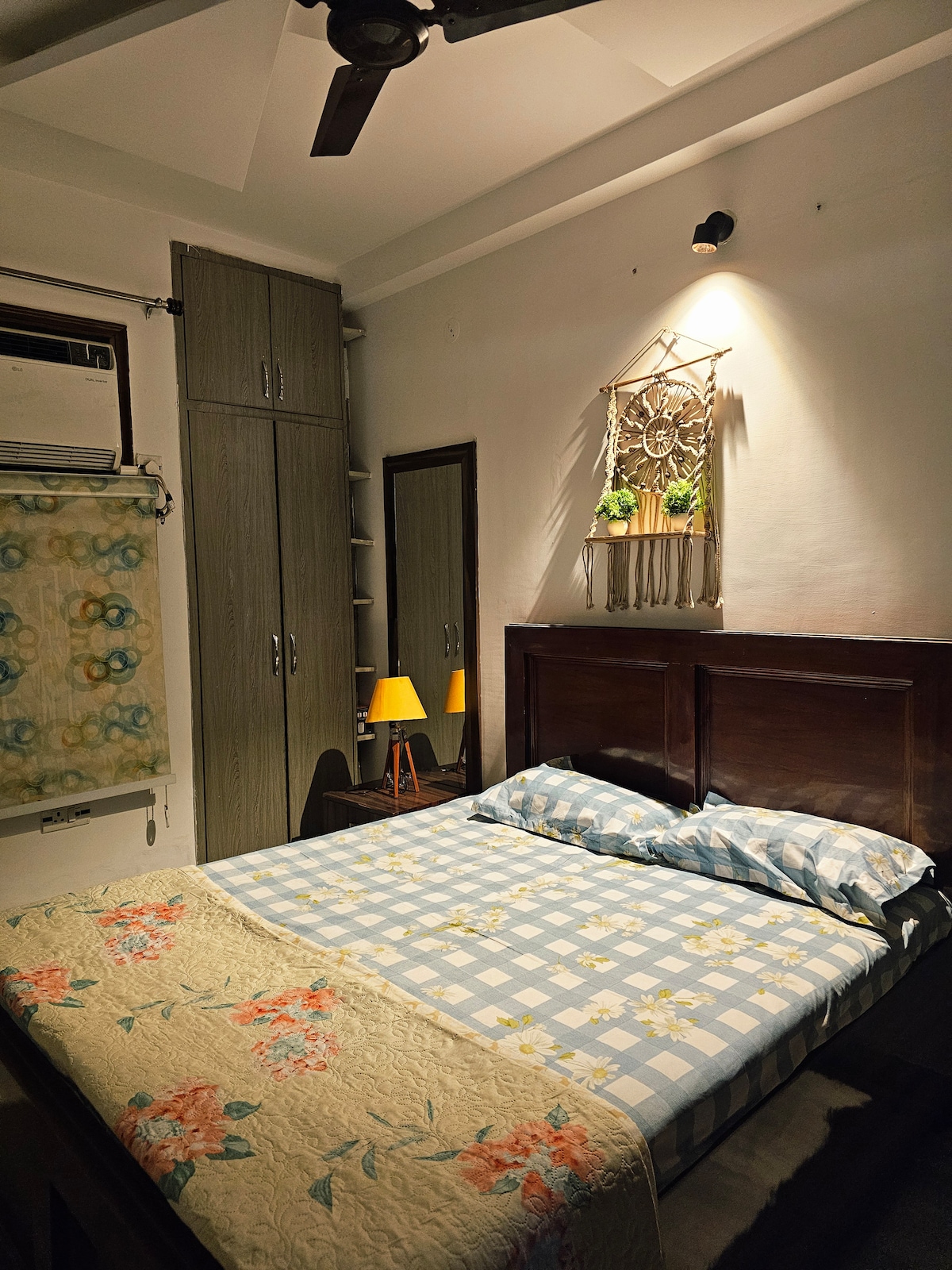 Welcome to our modern and relaxing 2-bhk apartment, perfect for couples or friends, Enjoy a comfortable stay with cozy bedrooms, a spacious living hall with TV for movie nights, and a fully equipped modern kitchen for home-cooked meals. Step out onto the large private balcony featuring a charming couple swing — the perfect spot to unwind, sip coffee, Whether you’re here to chill with friends or spend quality time with loved ones, this apartment offers the perfect blend of comfort and good vibes.