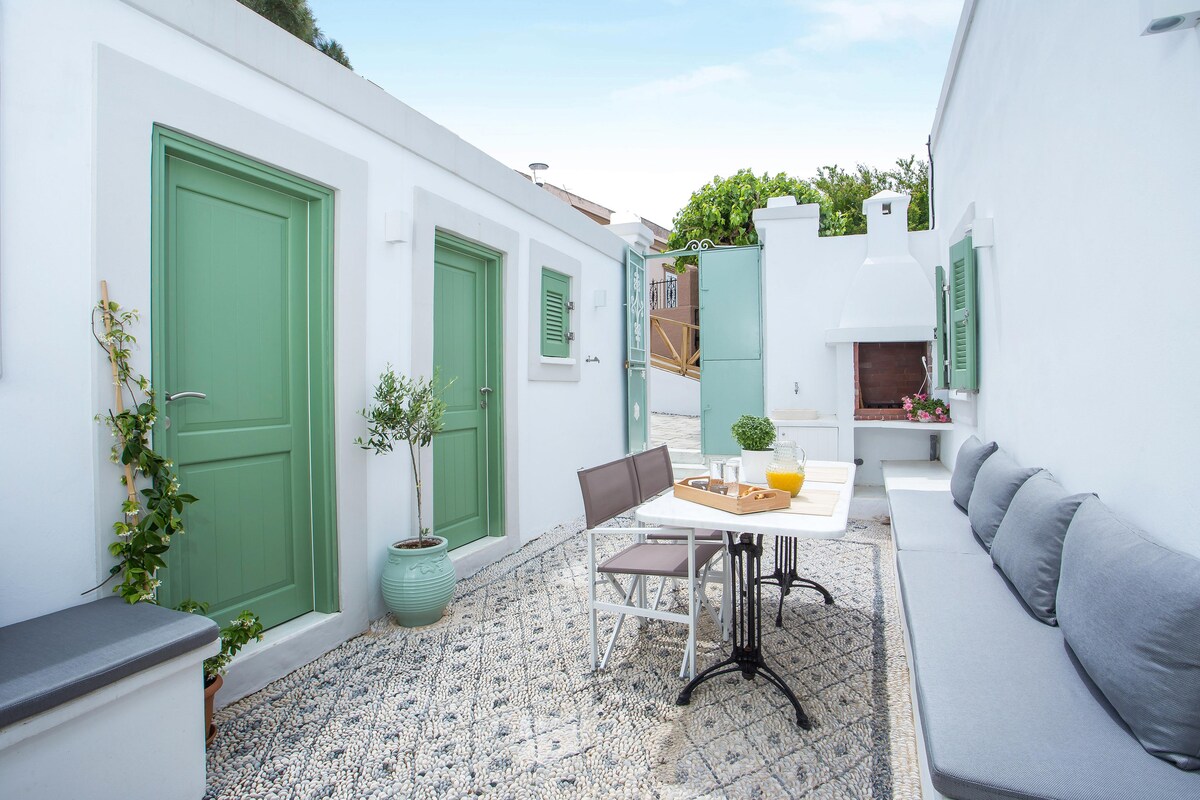 Casa neoclásica recientemente reformada, construida con influencia italiana. Consta de primera planta y planta baja con patio trasero privado y una piscina de inmersión con funciones de jacuzzi. La planta baja puede alojar hasta 2 personas en el sofá cama, teniendo en su planta un baño privado, la cocina y el patio trasero. El primer piso puede alojar hasta 2 personas más con una cama tamaño queen, una zona de relajación y un baño privado. Nuestro alojamiento está situado en una de las zonas más tradicionales del centro de Rodas.