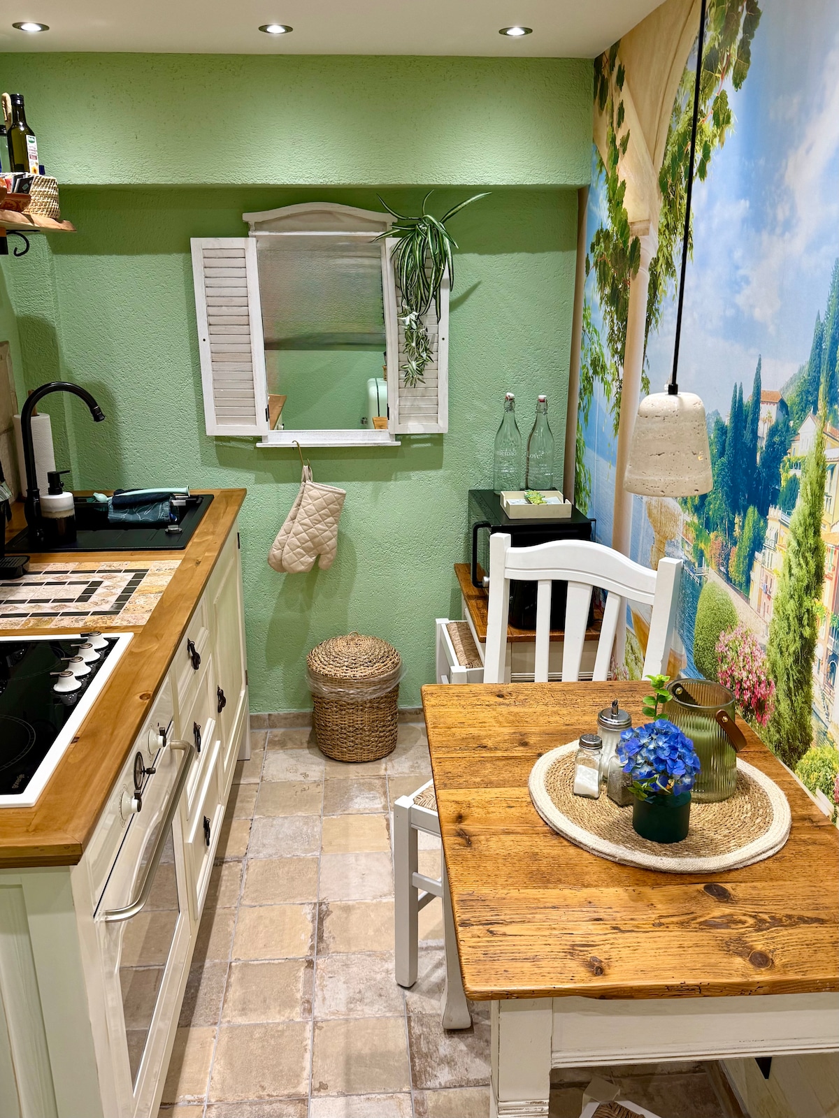 ¡Bienvenidos a nuestra casa! Detrás de nuestra casa, un nuevo apartamento moderno espera, perfecto para relajarse. Disfruten de una cocina de verano, un baño con ducha y un dormitorio abierto con una cama doble acogedora (1,60 x 2,00 m). La terraza privada de madera en el verde es ideal para cafés por la mañana y noches tranquilas con vino. ¿Lo mejor? El apartamento es todo para ustedes – sin estrés, solo paz.