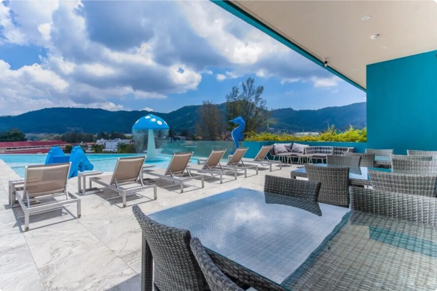 King bedroom + living room sofa-bed 🔸 No deposit required 🔸 Free electricity and water 🔸 All incluted. No extra fees 🔝 Main building (3rd floor) 🔝 Stunning Pool View 🔝 Renovated 2025 The resort is in the heart of the exclusive Kamala Beach where sunset dinners blend with traditional fire shows and the theatrical magic of Phuket FantaSea & Carnival Magic leading into wild beach parties at the world famous Café del Mar. The perfect mix of facilities and vibes for your memorable holiday!