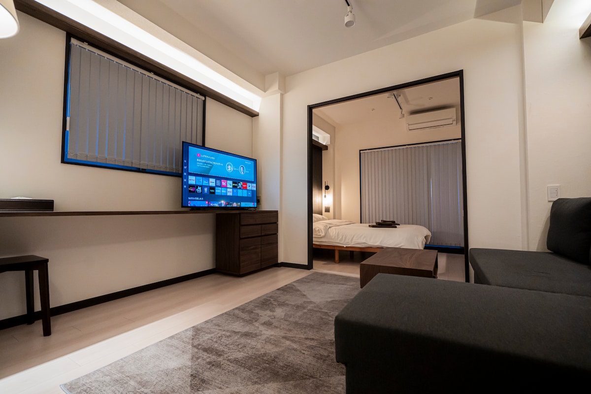 Step into a world where modern elegance meets timeless tradition. This luxury apartment in Gion features a spacious living area with a comfortable sofa, and a bedroom with a cozy double bed. Just a short walk from Gion-Shijo and Sanjo stations, with iconic landmarks like Yasaka Shrine and Hanamikoji nearby. Enjoy a private kitchen for cooking local Kyoto delicacies. Experience a special stay in the heart of Kyoto.