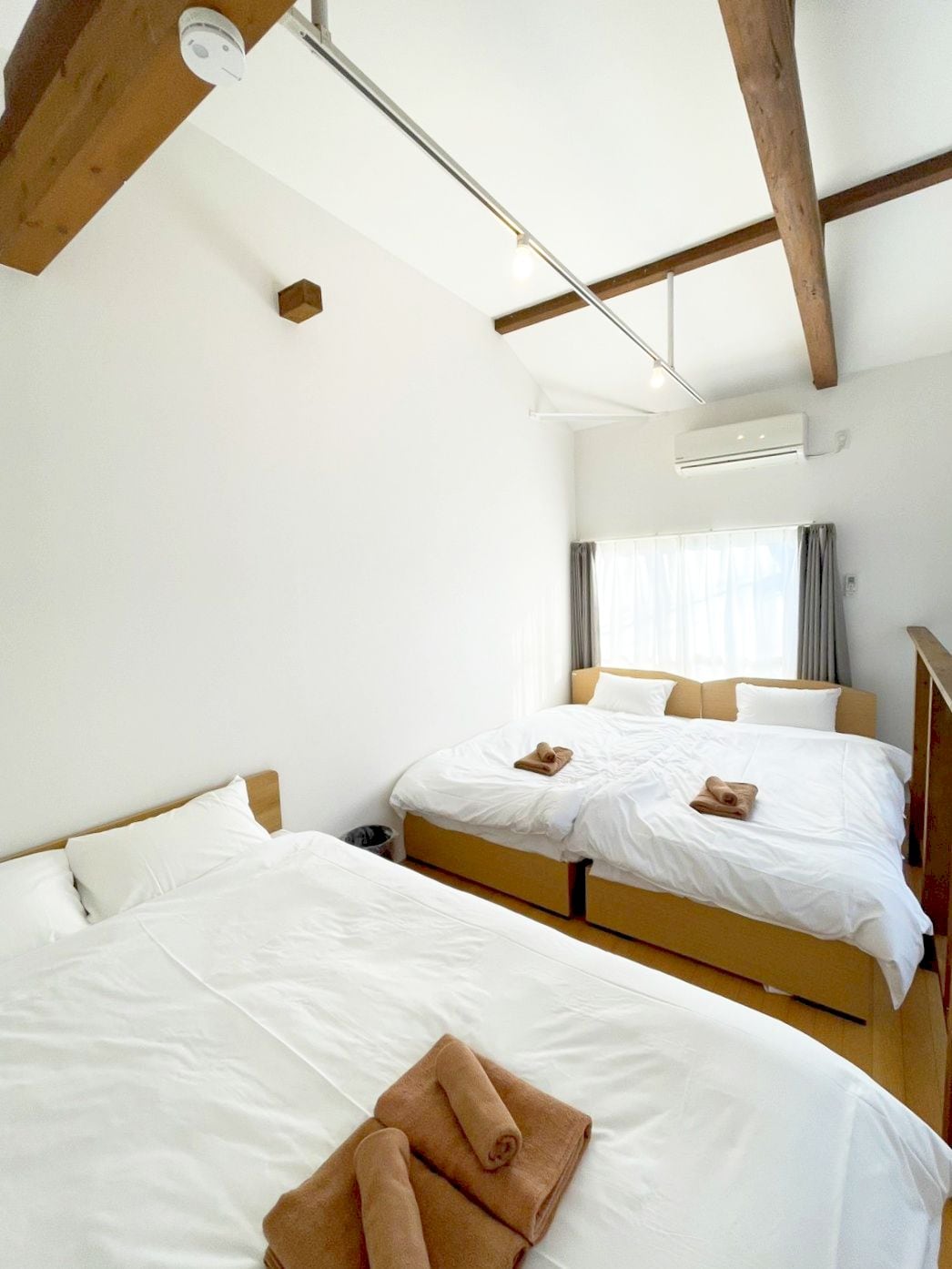 A private house located just 7 minutes by train from Shibuya Station, near Komazawa-daigaku Station. It is situated in a quiet residential area, with Komazawa Park and other large parks nearby. Although it’s about a 14-minute walk from Komazawa-daigaku Station, the rates are set more affordably because of this. ◎ The two-story house has two rooms: one with beds and another with futons. Guest capacity 3–4 guests … Comfortable ◎ 5 or more … May feel a bit tight