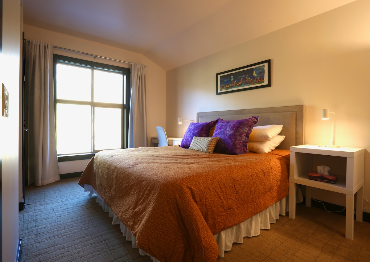This amazing mountain view HOTEL ROOM has 245 Square feet. NO KITCHEN , it is NOT a big space. Patio, free WiFi, smart TV, mini fridge , toaster ,microwave and KEURIG coffee maker available, amenities include GYM . Good for couple who loves outdoor activities. one designated stall provided for this condo in underground parkade. Or 11 FREE complex parking available at the rear of the building on a first come, first served basis. 10 minutes walking distance to Canmore downtown. 25KM to Banff.