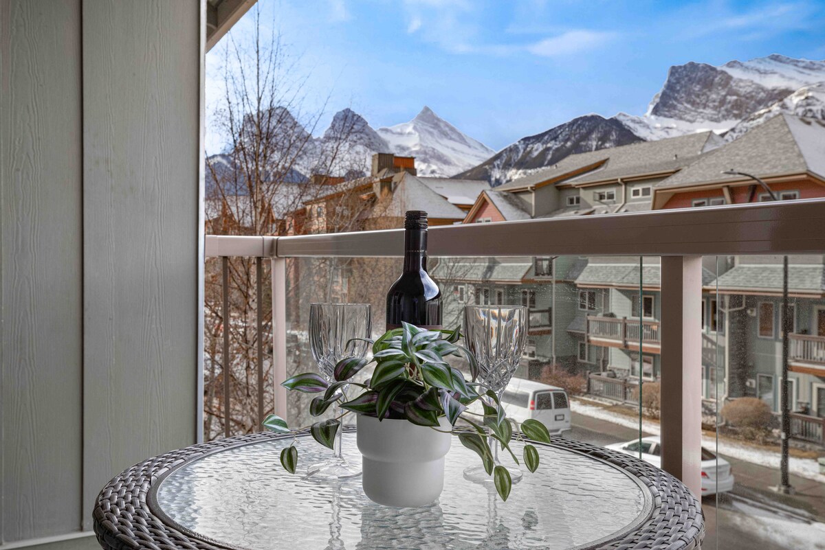 This newly constructed top-floor suite offers an exceptional living experience with breathtaking mountain views. Enjoy premium amenities like the communal rooftop hot tubs or the custom-built wet sauna. Host a BBQ and unwind on your two expansive private balconies. As night falls, gather around the fire table and marvel at the starry skies. Just a short drive from Banff, this property blends luxury and convenience for the ideal mountain getaway.