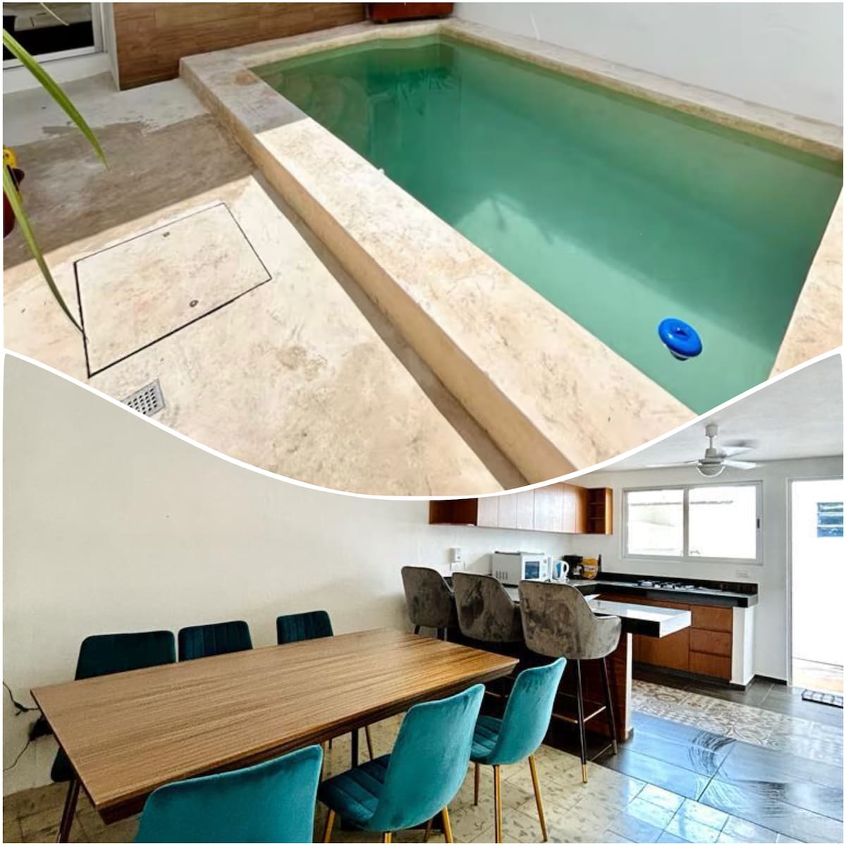 Disfruta de esta casa vacacional completa recien remodelada con alberca privada. A poca distancia caminando de una plaza comercial con supermercado, cine, restaurantes, etc. y a 10 minutos en auto al centro de la ciudad de Mérida y a paseo de Montejo. Se encuentra a 5 minutos en auto del andador gastronómico y turístico y del parque de la plancha. La casa es de una planta cuenta con alberca y terraza privada, 2 baños completos, 1 habitación, cocina, sala y comedor.