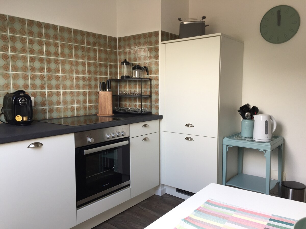 Hermoso apartamento en el ático completamente amueblado (80 m2) con balcón y gran terraza en la azotea con vistas a los bosques. En la cocina se proporciona el equipamiento básico como especias (vinagre, aceite, sal, pimienta...), paños de cocina, detergente y varios productos de limpieza. Hay disponibles una cafetera Senseo y un Sodastream (para hacer agua con gas). En el ático hay una hamaca y una chaise longue para relajarse.