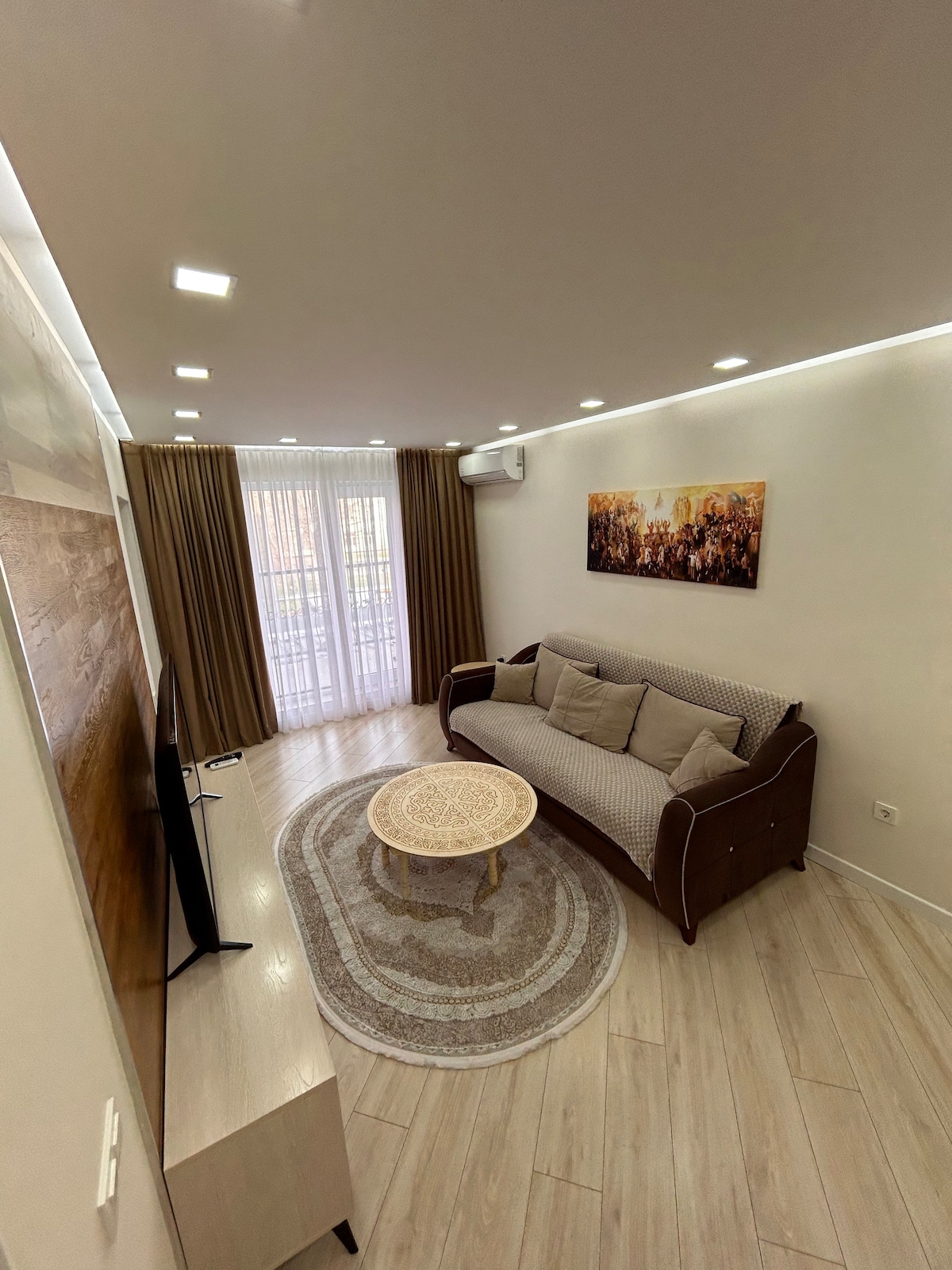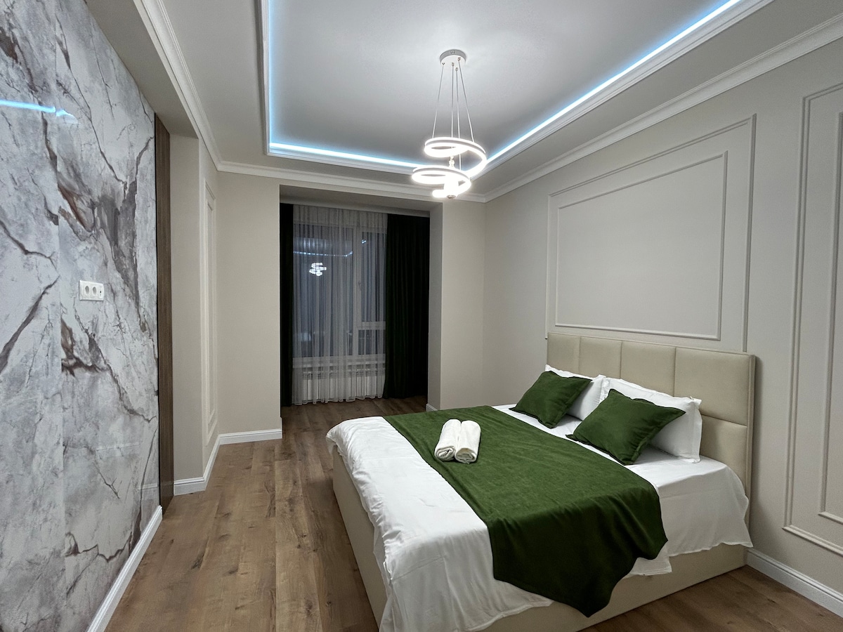 Bienvenido al apartamento de élite ubicado en el complejo residencial Al-Farabi cerca de la plaza. El apartamento está recién renovado con todos los elementos esenciales necesarios para una estadía larga y cómoda: todos los electrodomésticos, internet de alta velocidad wi-fi, TV por cable, lugares para dormir 2, también hay un sofá plegable de 2 camas para los huéspedes, todos los muebles necesarios, platos para cocinar y comer.