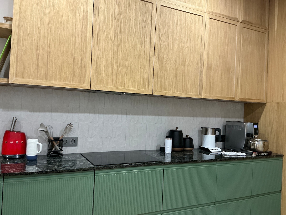Nuestro apartamento está frente al parque Dendra, vistas increíbles, ideal para familias, muy tranquilo. Tiene 2 dormitorios con tres camas, un pasillo, una cocina y dos inodoros. El edificio es el complejo Tumar. Nuevo y moderno.