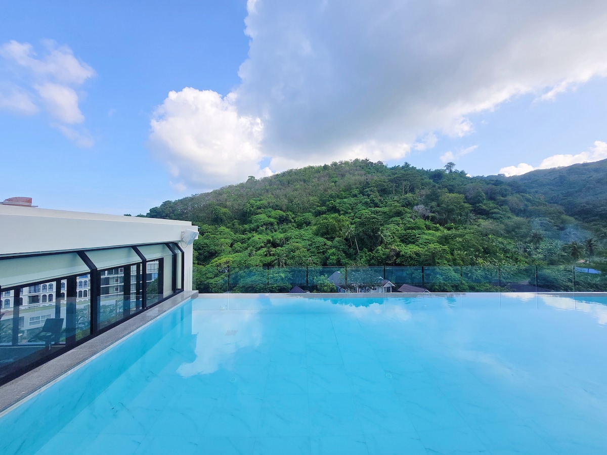 Bienvenido a Utopia Karon (Departamento de lujo con vista al mar) ---------- Un nuevo departamento construido en 2024, ubicado en Karon, la popular zona turística de Phuket, 38 metros cuadrados — Balcón con vista completa al mar + bañera inmersiva. Lo más destacado de la propiedad: ¡a 7 minutos a pie de la playa de Karon!Rodeado de restaurantes, minimercados y mercados nocturnos, podés disfrutar de la tranquilidad y la comodidad. Balcón privado con vistas al mar + balcón romántico con 35 espacios cuadrados inteligentemente diseñado, dormitorio con acceso directo al balcón panorámico, vistas al mar y a la montaña, luz del día al cielo marino azul, disfruta de la belleza prístina del bosque salvaje. Skyline Mountain View Infinity Pool, 360 Immersive Phuket Luxury Escape Living Cocina completa + casa inteligente, cocina moderna totalmente equipada (estufa de inducción, microondas, nevera, utensilios de cocina), TV inteligente en la habitación, WiFi de alta velocidad, aire acondicionado. Instalaciones completas en la comunidad hotelera: hay dos grandes piscinas en la azotea, gimnasio, restaurante, estacionamiento con cargo, estacionamiento gratuito. Baño: se proporcionará separación seca y húmeda, agua mineral y artículos de tocador desechables en el momento del registro. Relájate en vacaciones, parada corta, gran meca para trabajar a distancia.