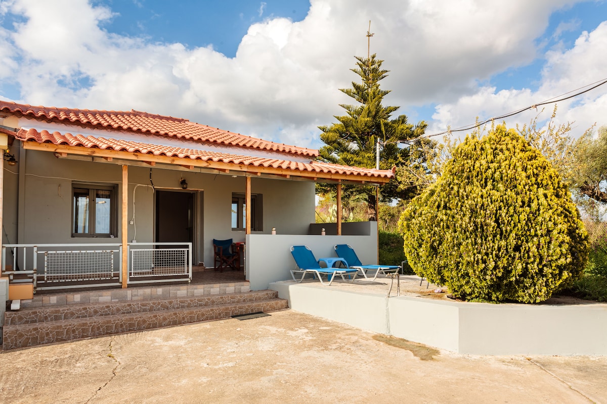 ¡Te damos la bienvenida a Kalamata! La casa está a solo 15 minutos del centro de Kalamata y a solo 5 minutos del aeropuerto. Tiene una terraza enorme, admite mascotas y es acogedora. Es perfecta para parejas o una sola persona. ¡Wifi y nueva cama doble añadidos! Está amueblada, es moderna, está recién pintada y tiene unas vistas estupendas a la ladera de la montaña. Obtienes: ¡Una cálida bienvenida! Cafetera, estufa, nevera y wifi Toallas limpias, sábanas y artículos básicos de higiene. Privacidad Silencioso Entorno apto para mascotas aire acondicionado