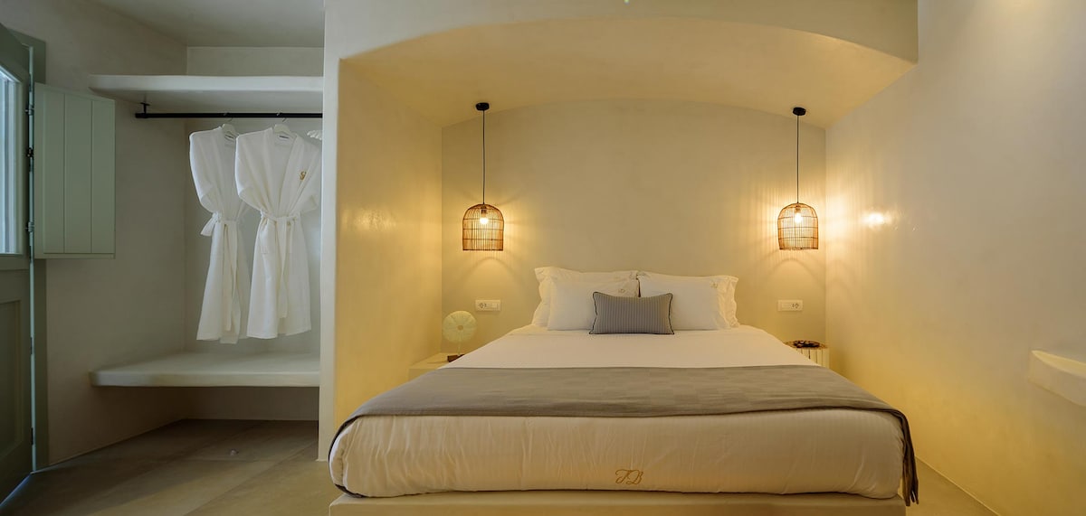 Bonsai suite is a hidden gem, close to the city center and the crowd but also so peaceful. It's just 1km away from Fira's main square, the capital of the island. Located in one of the most traditional villages, very close to bus stations, restaurants and landmarks. Relax at the pool and enjoy the view! The suite also offers a private outdoor jacuzzi. Daily breakfast can be served in the suite (with an extra cost). There is also free parking available.