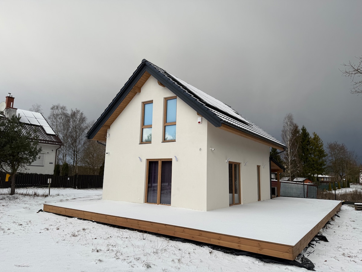 Relájate y desconecta en este espacio tranquilo y elegante. Te damos la bienvenida a una casa moderna y cómoda durante todo el año en Kashubia(a 60 km de Triple City). Ofrecemos interiores amplios y totalmente equipados. Planta baja con comedor y cocina totalmente equipada, salón con gran esquina convertible, chimenea , TV50" ,aseo. Piso con tres amplios dormitorios y un baño . La casa tiene una amplia terraza con paca caliente, barbacoa, fogata y zona de recreación en el jardín.