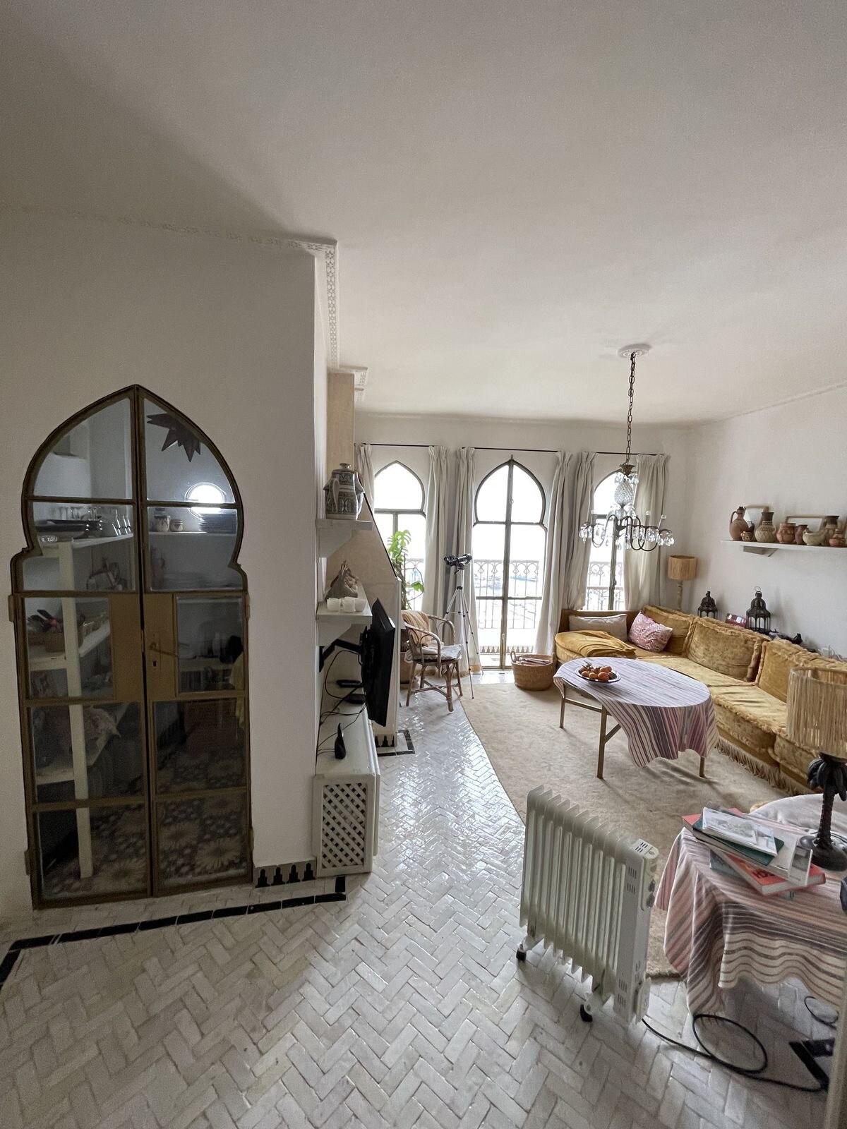 Ubicado junto al icónico Palacio Forbes, este alojamiento ofrece una conexión auténtica con el legado cultural de Tánger. Con un diseño elegante, vistas panorámicas al mar y una decoración cuidada, combina lujo y confort en un entorno sereno. Ideal para quienes buscan una estancia especial frente al mar, con acceso a los principales puntos de interés de la ciudad. Disfruta de atardeceres únicos desde el balcón cerrado y de interiores pensados para el descanso y la inspiración.