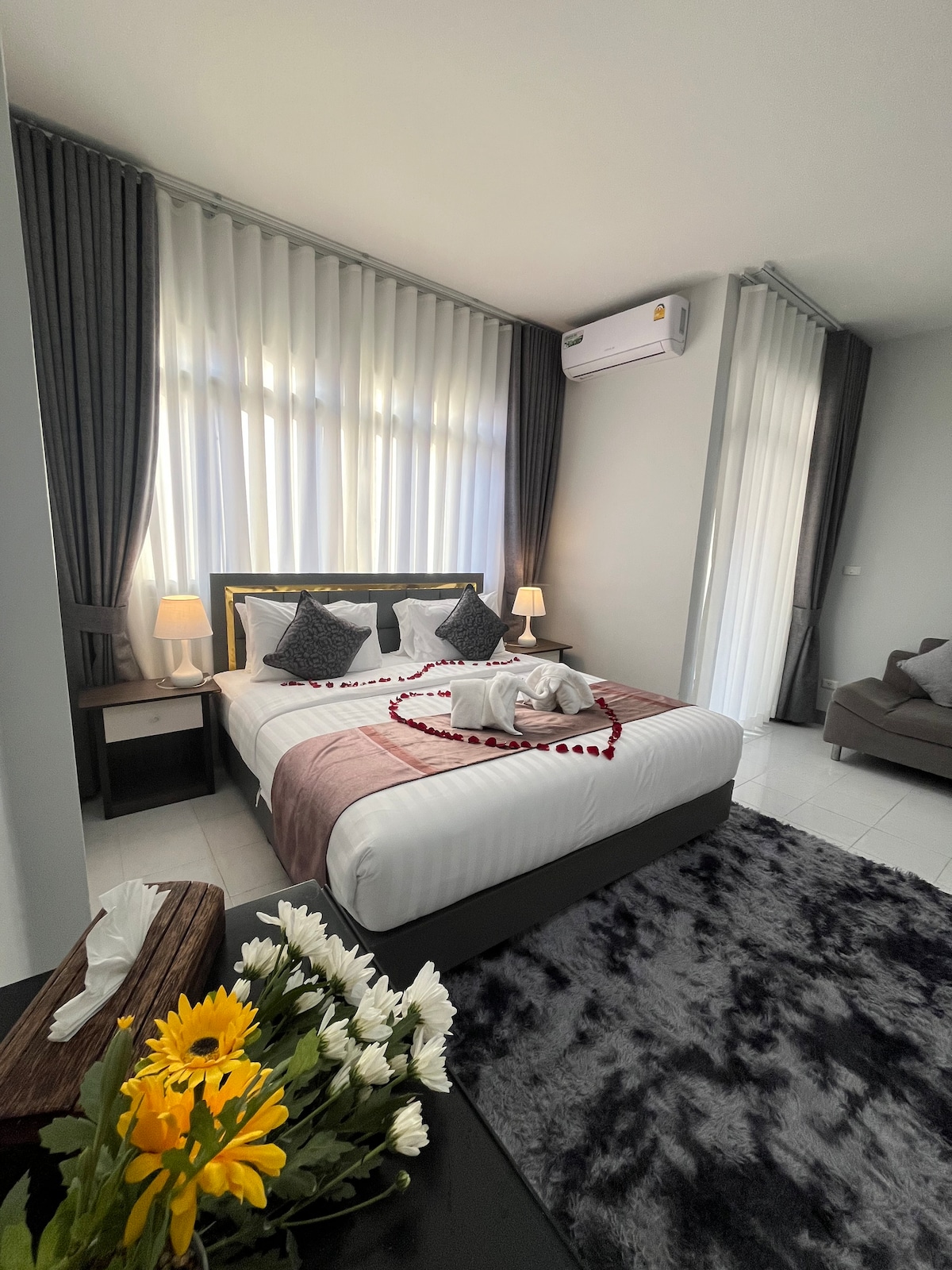 Nuestro hotel está en la tercera calle de Patong, junto a la lavandería, 711.Restaurante chino, a solo 250 metros del restaurante Doo Dee.Está a 10 minutos a pie de la playa de Patong, junto al mercado nocturno OTOP, el mercado nocturno Dalong y el mercado nocturno Marin.Mercado nocturno de estilo asiático del sudeste.Toma una moto hasta la calle de bares bangla más famosa de Phuket, así como el boxeo tailandés, el mercado de mariscos de Bangza y Jungceylon a solo 3 minutos. Fácil acceso a tiendas y restaurantes populares desde este encantador lugar para alojarse.Te ofrecemos 18 horas de chat en línea.Respuestas sobre tu estadía y cómo moverte.También ofrecemos alquiler de motos, así como asesoramiento y personalización de itinerarios para viajes de un día, para que tengas un servicio integral durante tus vacaciones.La ayuda más práctica para tus vacaciones
