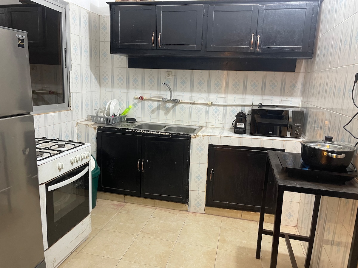 Détendez-vous dans ce logement calme et élégant, récemment rénové sur un ton blanc et noir et agrémenté de fleurs et de tableaux design L’appartement est idéalement situé à 1 km de l’ambassade des Etats-Unis, 50 m de la FEMAFOOT et 200 m du Ministère des Finances Électricité 24h/7, l’appartement dispose de panneaux solaires et d’une batterie Lithium de 15 kw/ h pour relayer les délestages d’électricité. TOUTEFOIS, L’appartement se trouve au 3ème et dernier étage d’un immeuble sans ascenseur