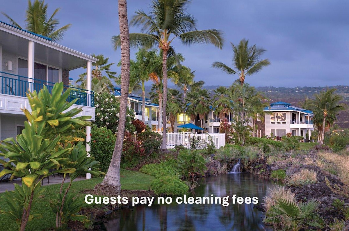 Kanaloa 3 dormitorios 2+1/2 baños aire acondicionado FRENTE AL MAR AMPLIO 2000 pies cuadrados. Estacionamiento GRATUITO. Tarifas GRATUITAS del centro vacacional. Aire acondicionado GRATUITO. Disfrutá de las comidas en tu lanai frente al mar. Camas king. Camas individuales disponibles. Caminá hasta el puerto de Keauhou (excursiones de esnórquel, botes de mantarrayas), Secret Cove (Hee'eia), películas, mercado, restaurantes A 5 minutos en auto de Kahaluu 3 piletas, jacuzzis, parrillas, casa club, Paseo marítimo, 16 acres de terreno tropical. 15 escaleras Mínimo de 2 noches La limpieza de 298 $ y el impuesto de Hawái del 17,96% se muestran en tu presupuesto de Airbnb.