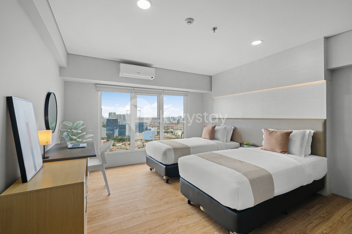 Professionally Managed by Kozystay Welcome to Magnolia's 2BR Loft in vibrant West Jakarta. Experience style and tranquility with breathtaking city views. With two cozy bedrooms and a chic living space, every corner exudes sophistication and comfort. Discover serenity in urban excitement at our chic loft retreat. AVAILABLE TO GUESTS: + Digital Check-in + Professionally Cleaned (disinfect) + Hotel Grade Amenities & Fresh Linens + Free High-Speed Wi-Fi + Free Netflix